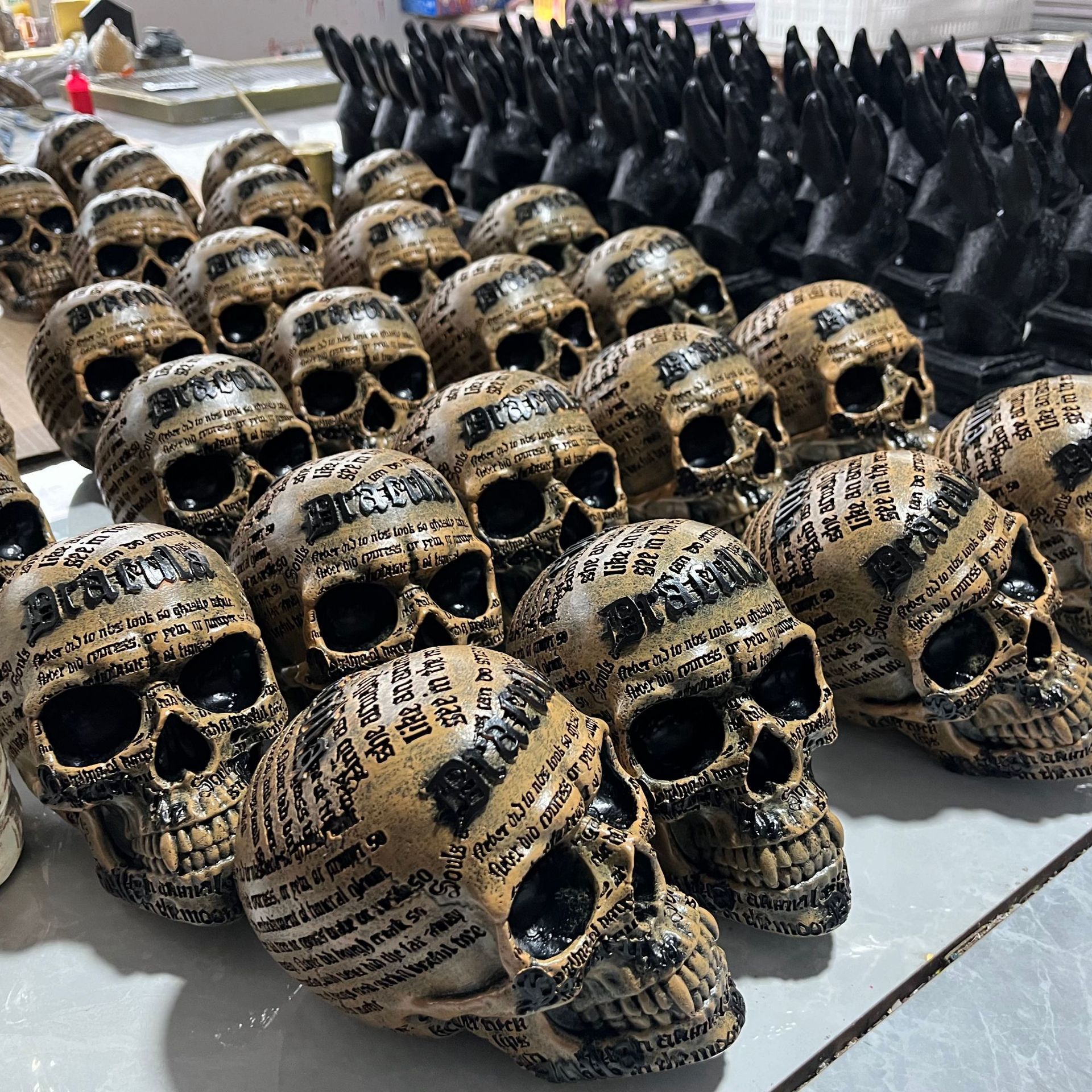 국경 간 해골 공포 벽 장식품, 창의적인 오토바이 헬멧 펜던트 디자인, 집 안뜰 수지 해골 장식품