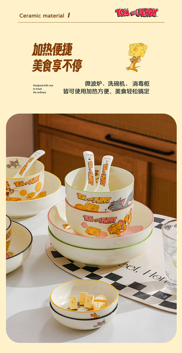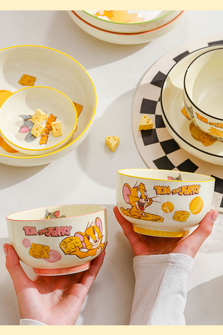 톰과 제리 어린이 식기 제리 귀여운 세트 유약 컬러 가정용 밥 그릇 세라믹 식기 세척기