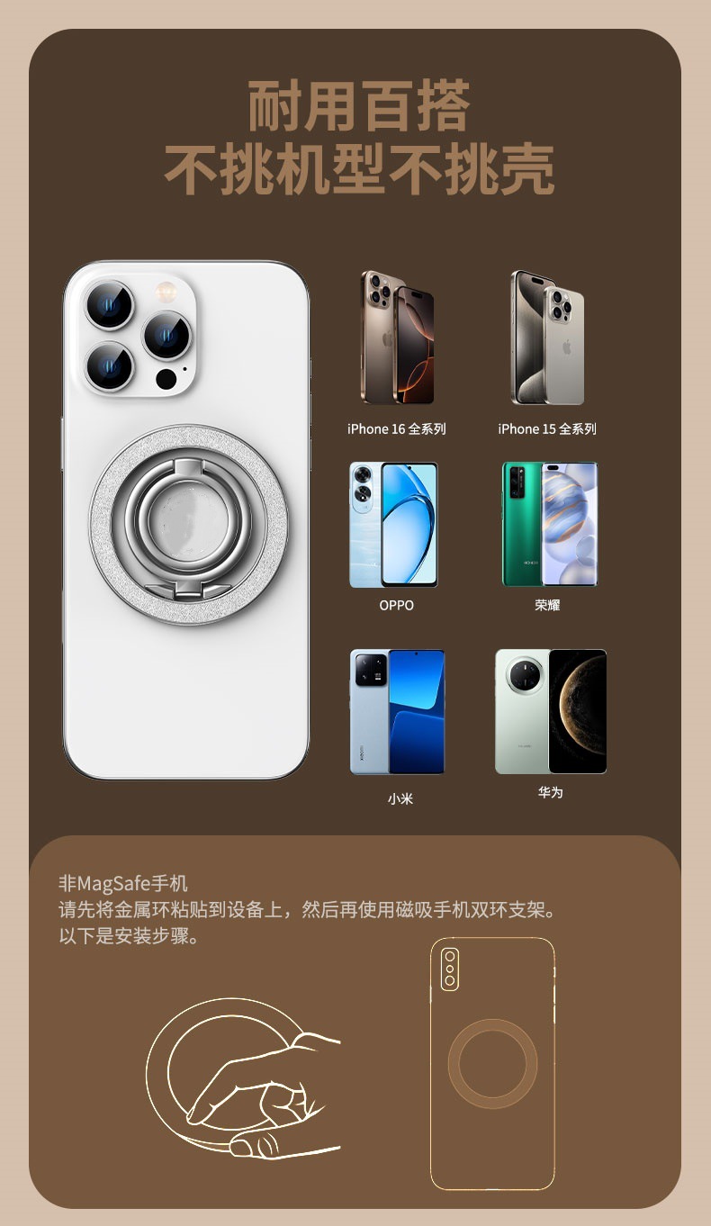 Magsafe의 새로운 양면 자기 휴대폰 홀더 글리터는 Apple 자기 링 버클 휴대폰 홀더에 적합합니다.