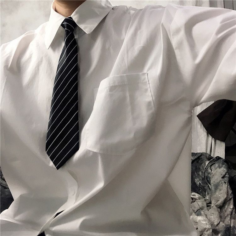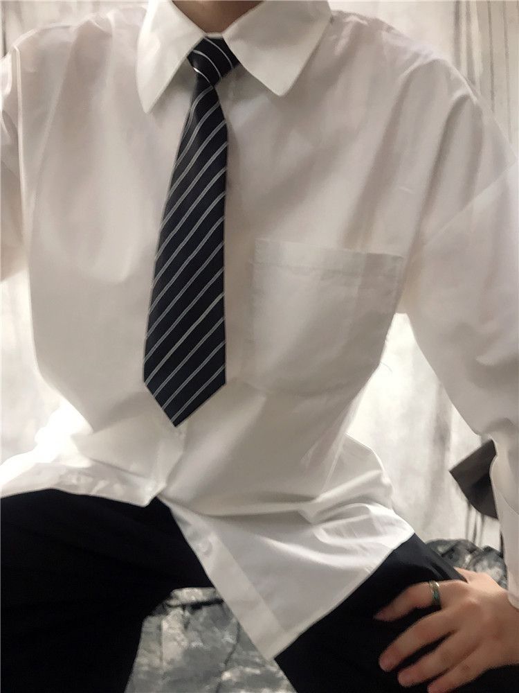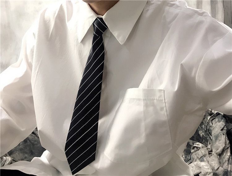 짧은 셔츠, 작은 넥타이, 프린트 스트라이프, 다재다능한 틈새 게으른 넥타이, 남성과 여성을 위한 빈티지 대학 스타일스토어 가기
