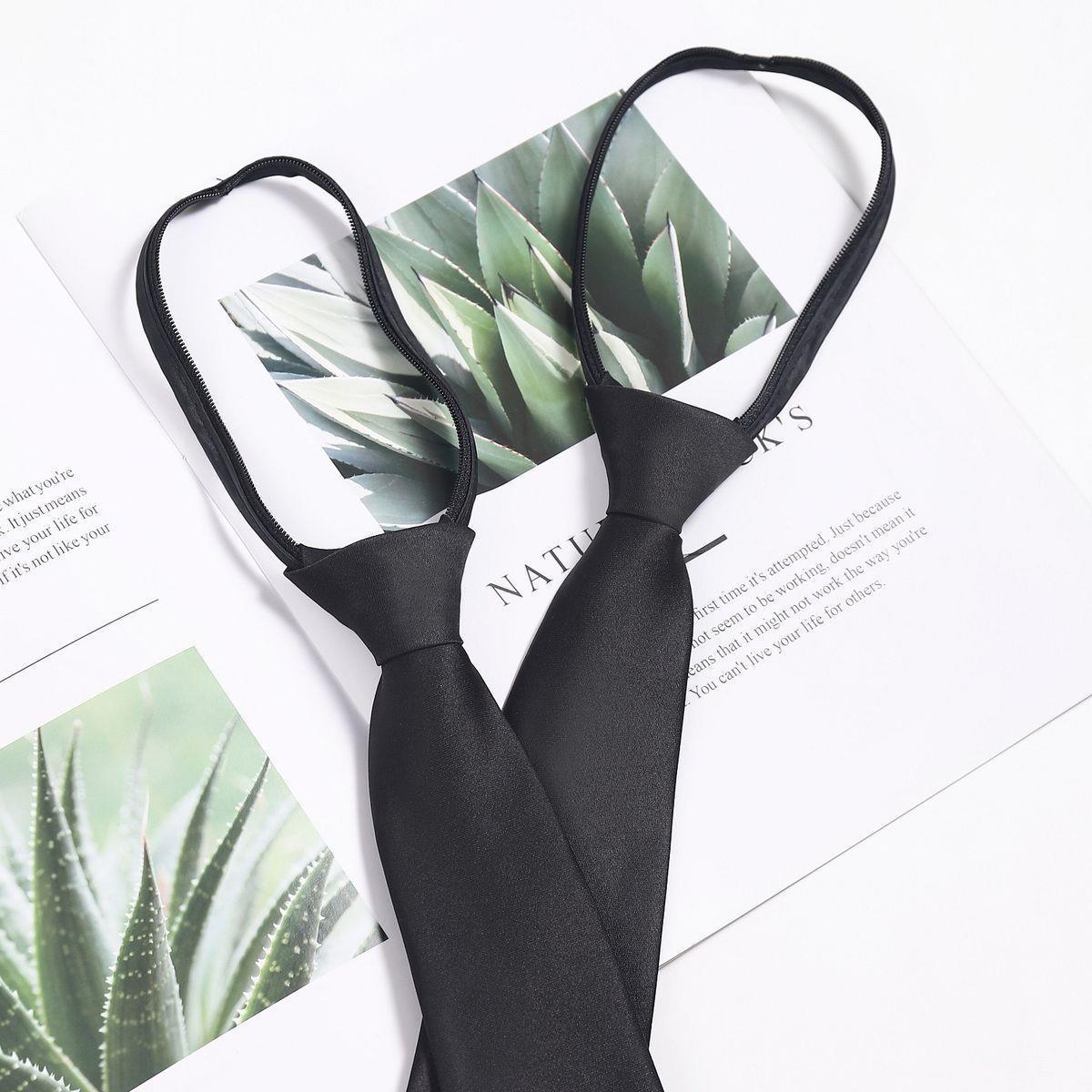 학생 무료 블랙 넥타이 대학 스타일 JK 셔츠 솔리드 컬러 지퍼 넥타이 남여 비즈니스 게으른 넥타이
