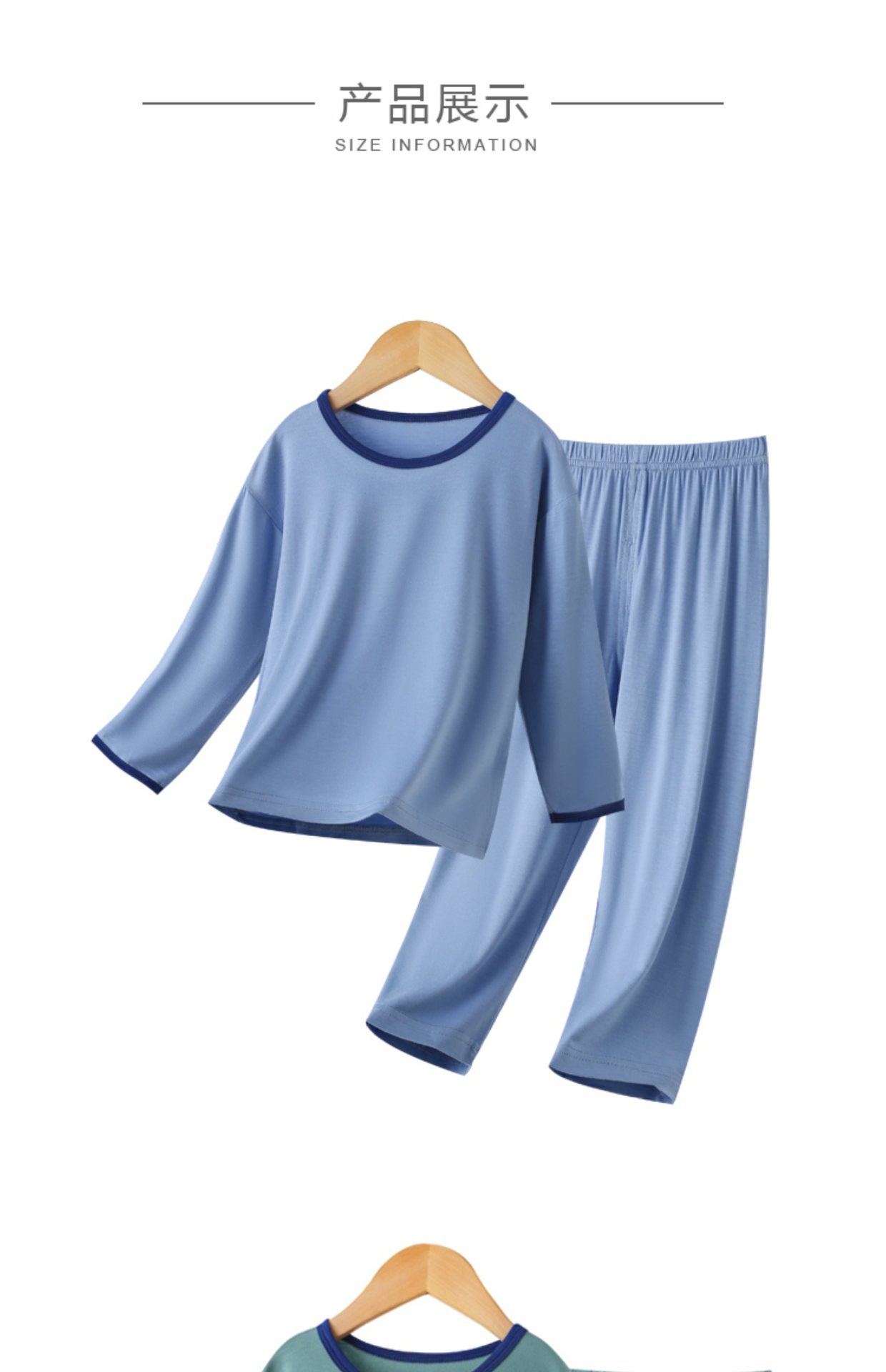 소년 모달 잠옷 봄 가을 가정 옷 세트 어린이 가을 옷과 바지 얇은 대형 어린이 에어컨 옷 긴 소매 바지