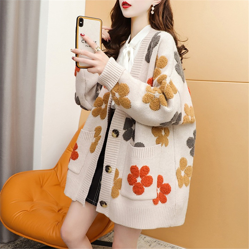 여성을위한 인터넷 연예인 달콤한 스웨터 재킷 2025 새로운 가을, 겨울 여성 의류 작은 신선한 일본식 게으른 스타일 니트 카디건 유행스토어 가기