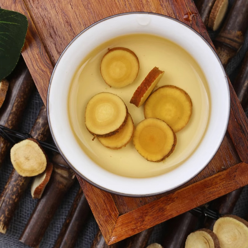 감초 한약재, 붉은 껍질 생감초 슬라이스를 물에 담가 차를 만들고, 감초 건조 분말, 비야생 흰피피 꽃과 도라지 차를 만들 수 있습니다.