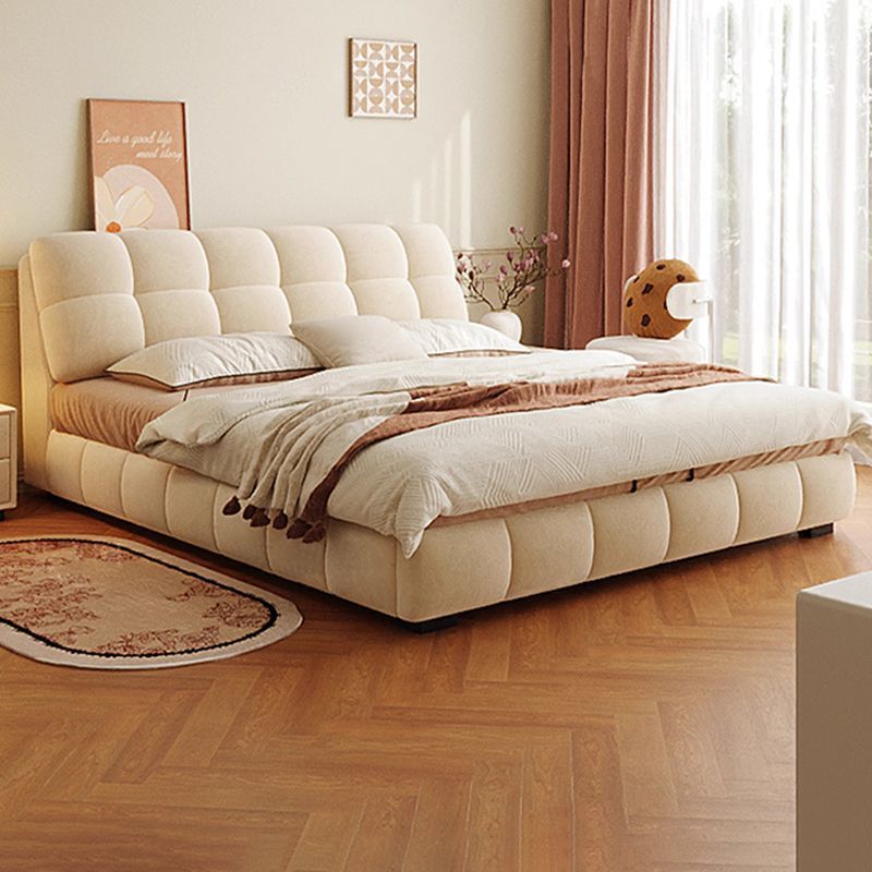 프렌치 크림 스타일 더블 마스터 침실 벨벳 웨딩 침대 모던 심플 2025 뉴 패브릭 침대 퍼프 마스터 침실 대형 침대