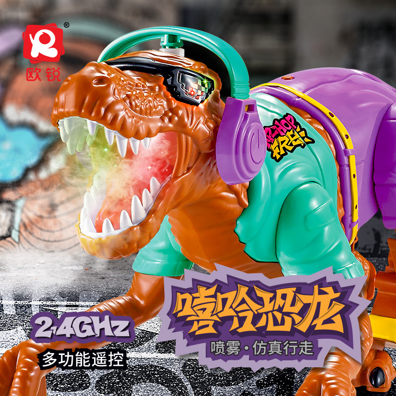 국경 원격 제어 스프레이 공룡 힙합 재미있는 조명 콘서트 걷는 시뮬레이션 전기 공룡 장난감 소년스토어 가기