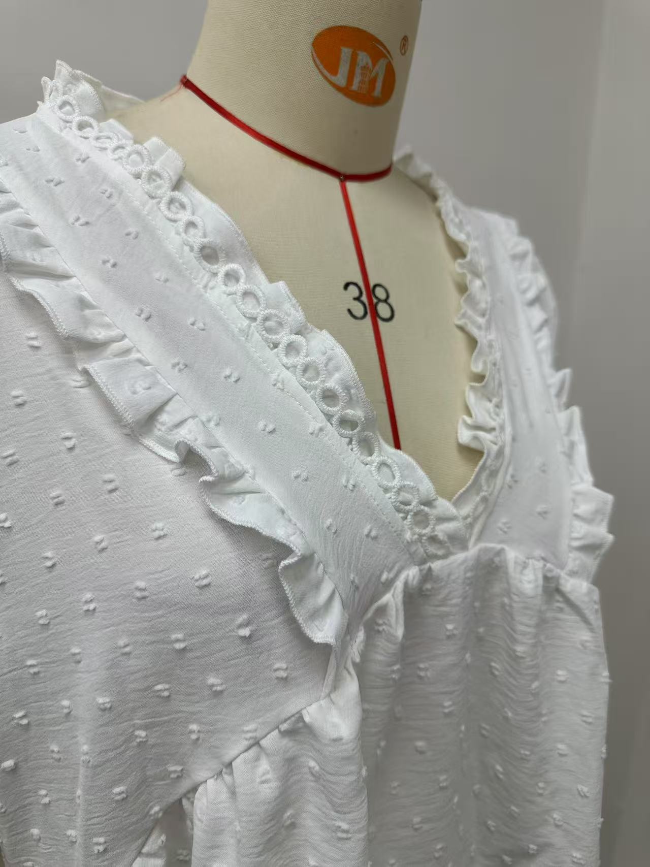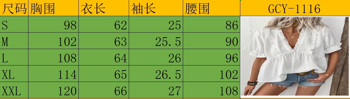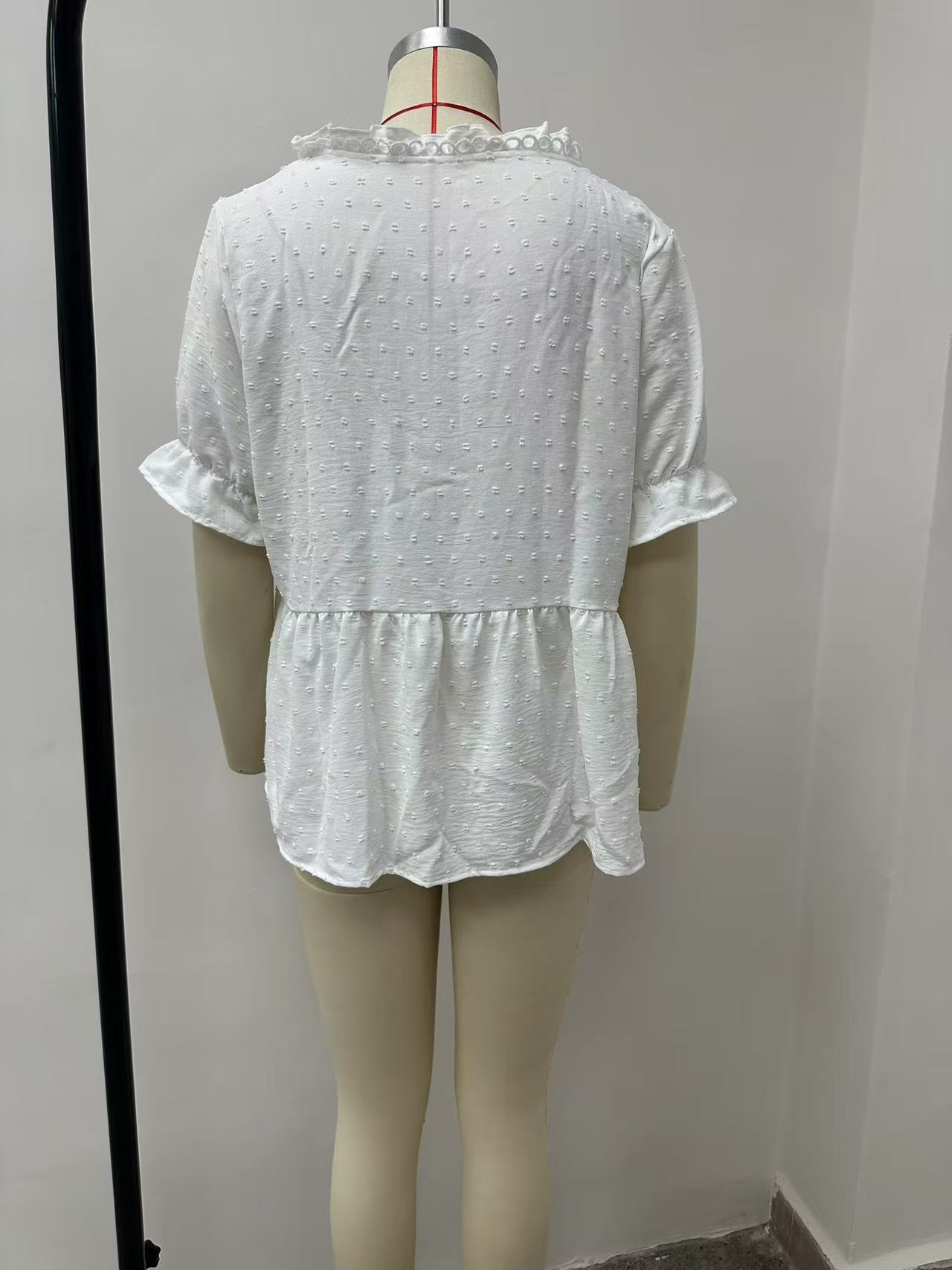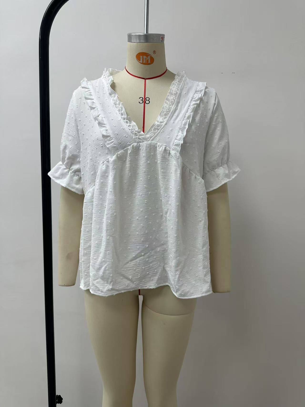 2025 유럽과 미국의 아마존 독립 역 레이스 탑 나비 슬리브 V-Neck 셔츠 캐주얼 우아한 러플 짧은 소매