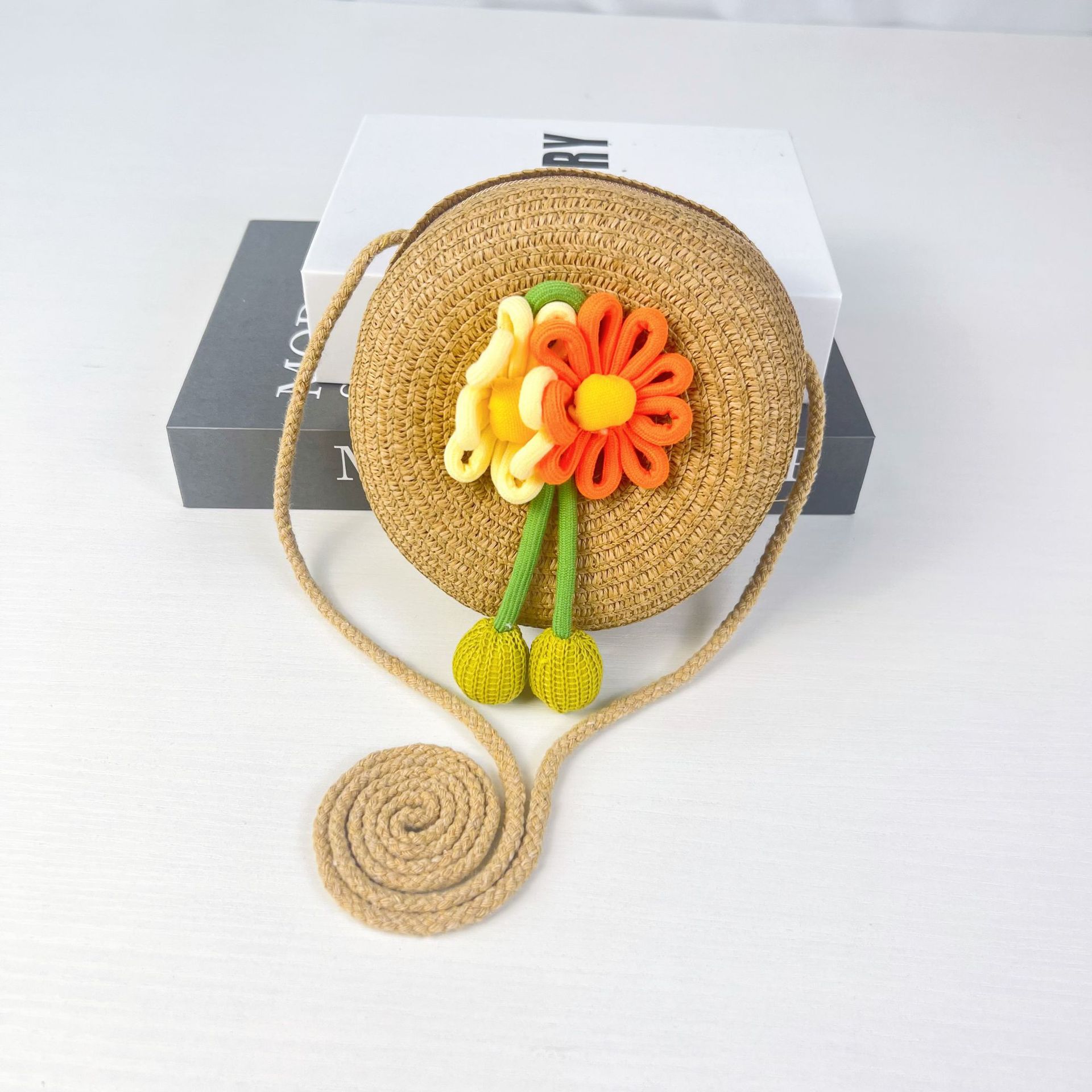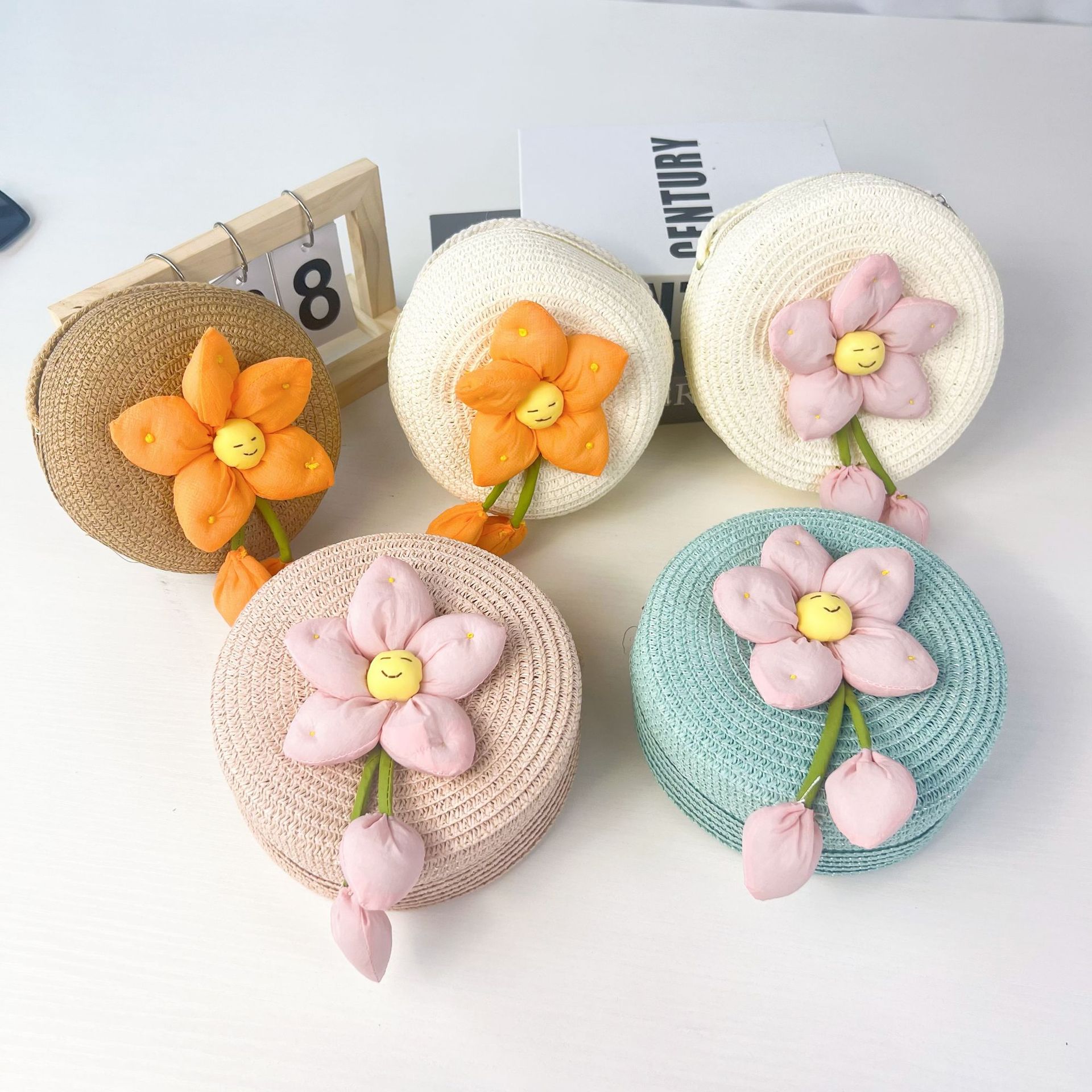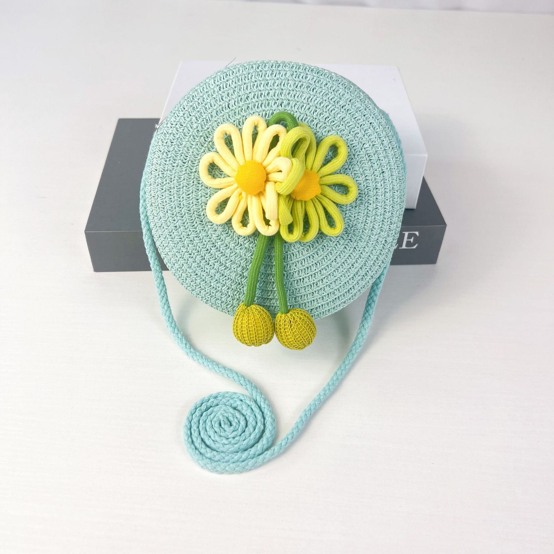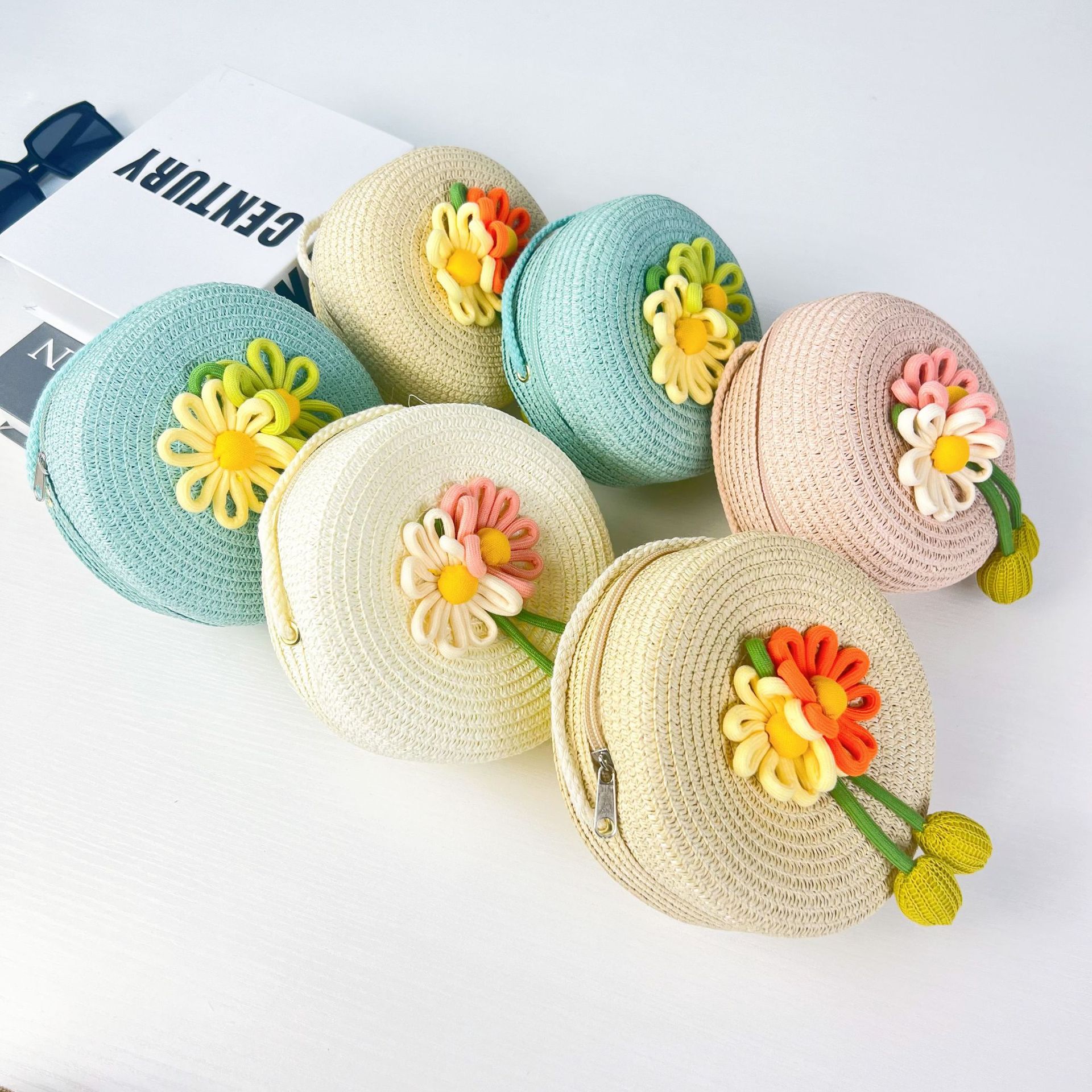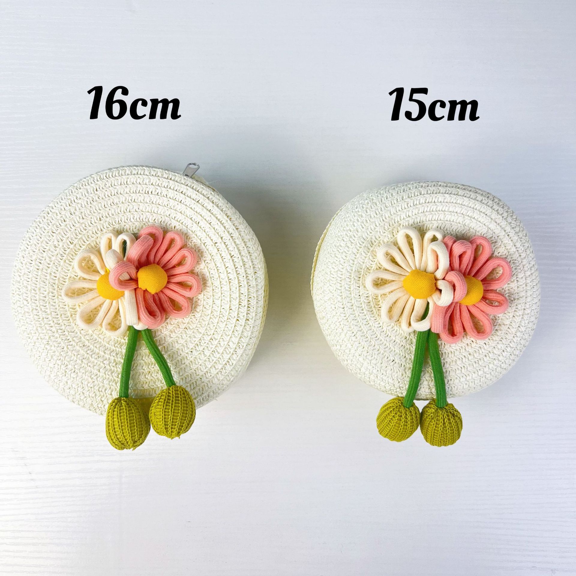 어린이 꽃과 잔디로 짠 대형 원형 가방 16CM 소녀 귀여운 작은 크로스 바디 동전 지갑 해변 달콤한 명소 도매스토어 가기