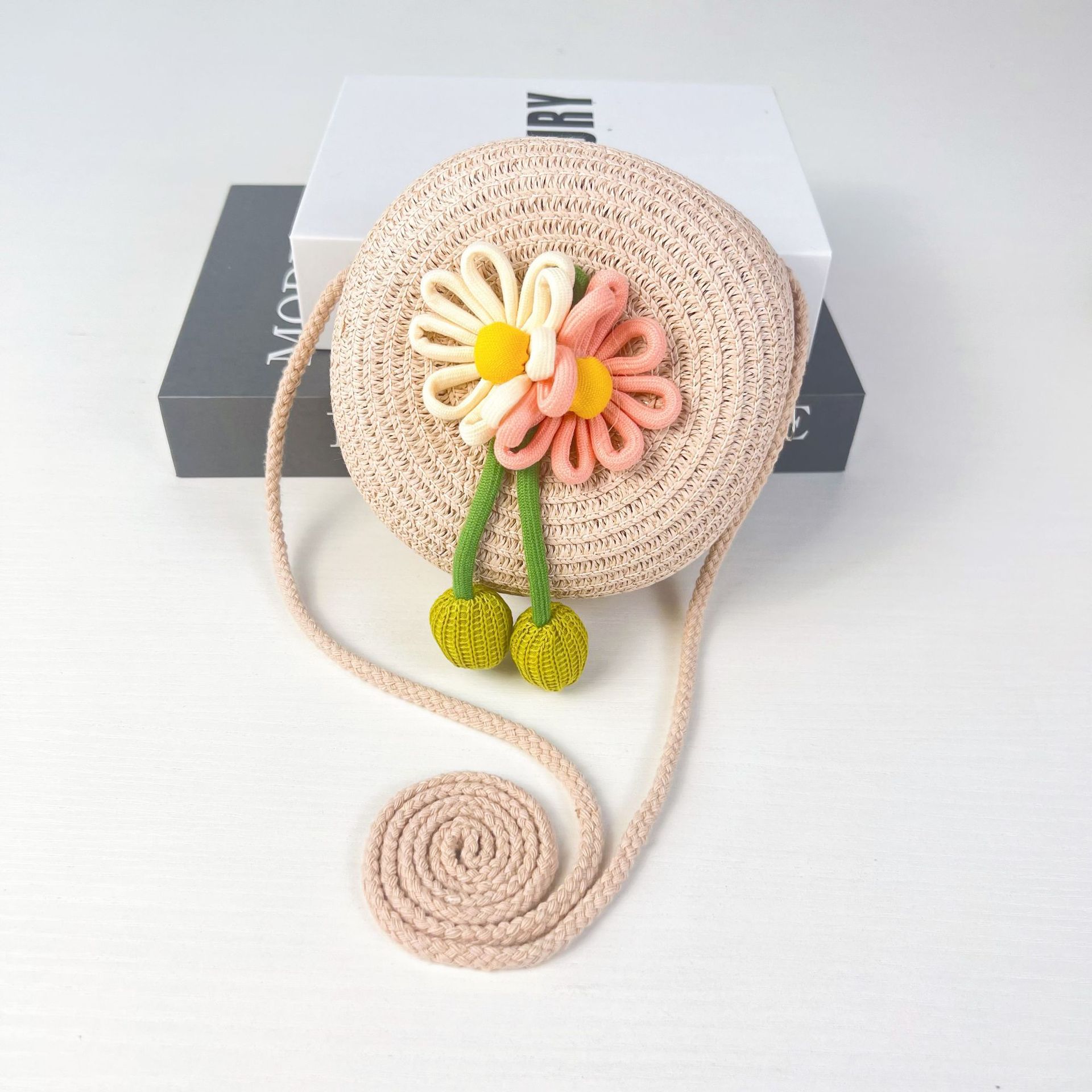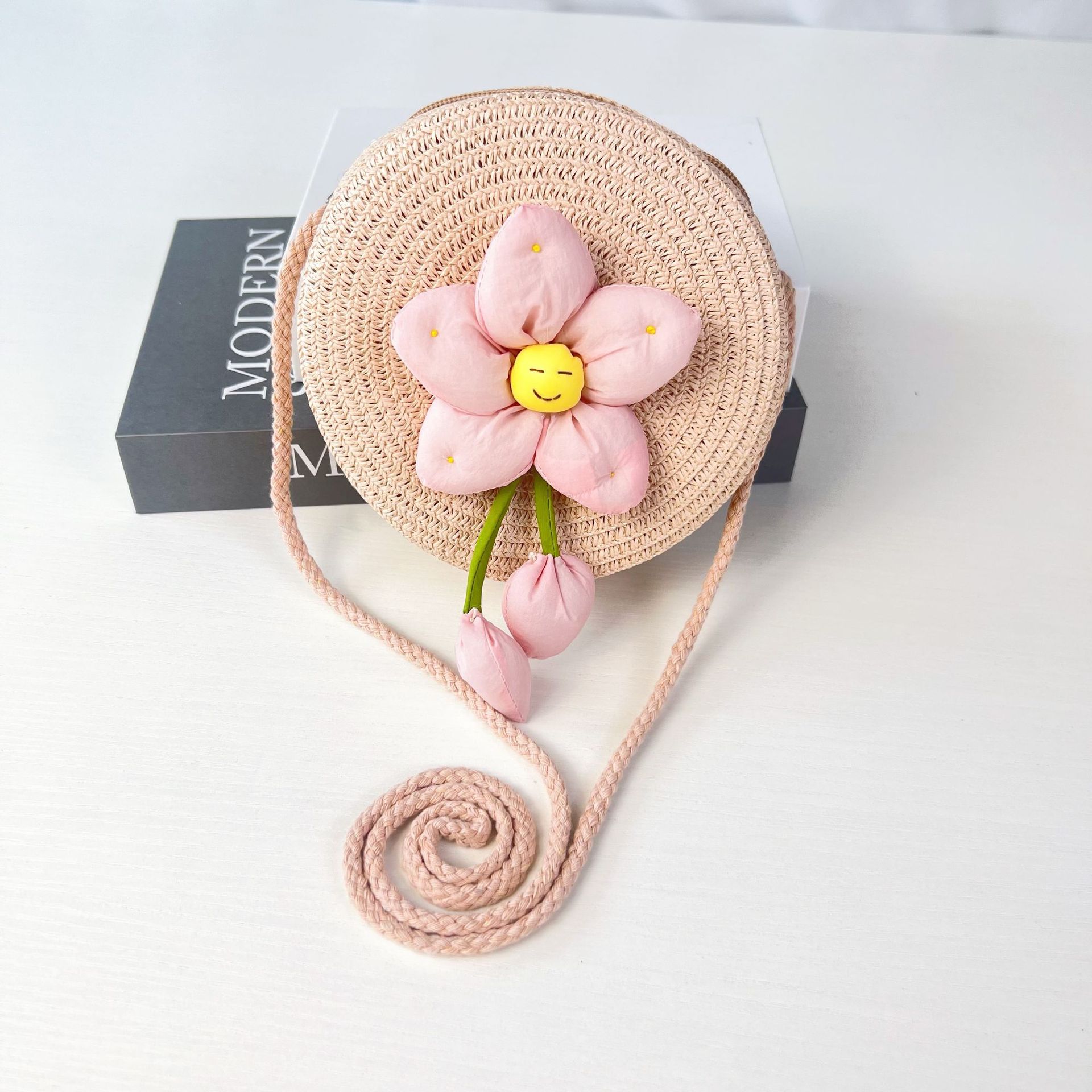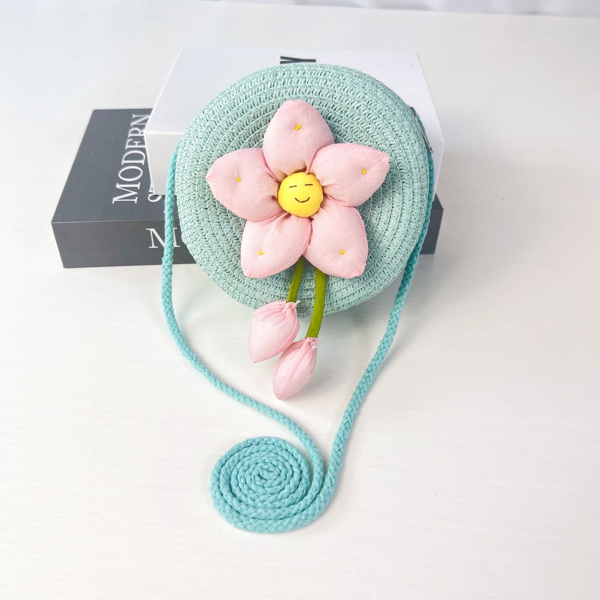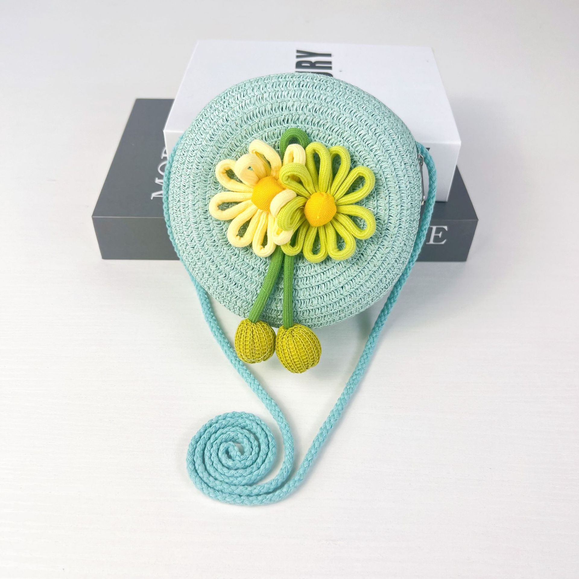 어린이 꽃과 잔디로 짠 대형 원형 가방 16CM 소녀 귀여운 작은 크로스 바디 동전 지갑 해변 달콤한 명소 도매스토어 가기