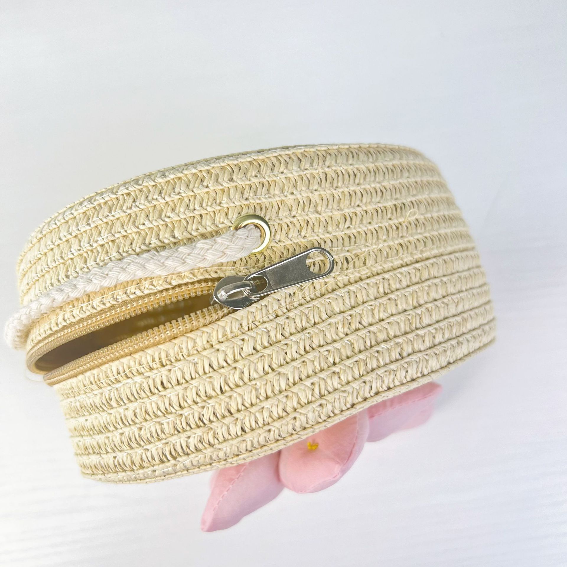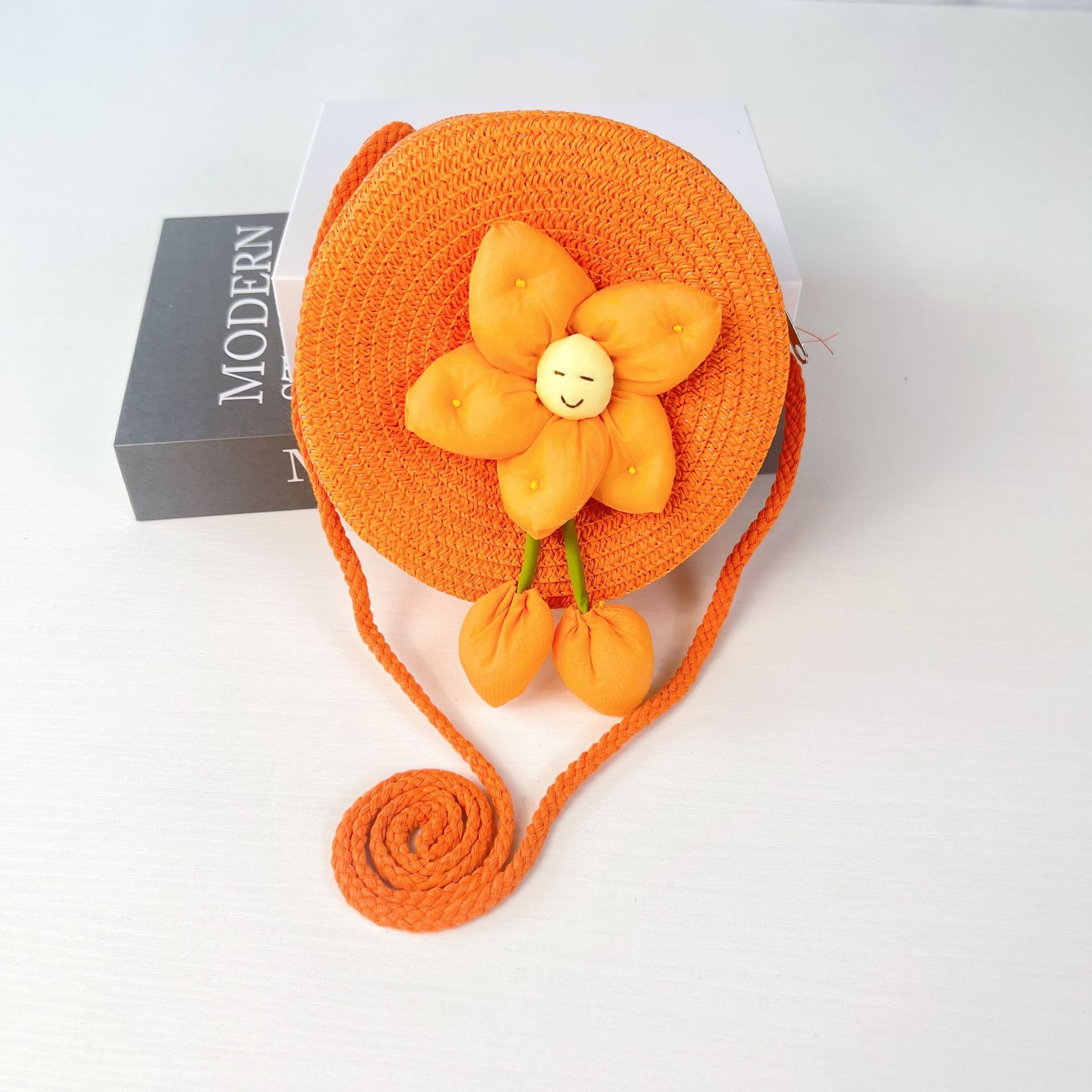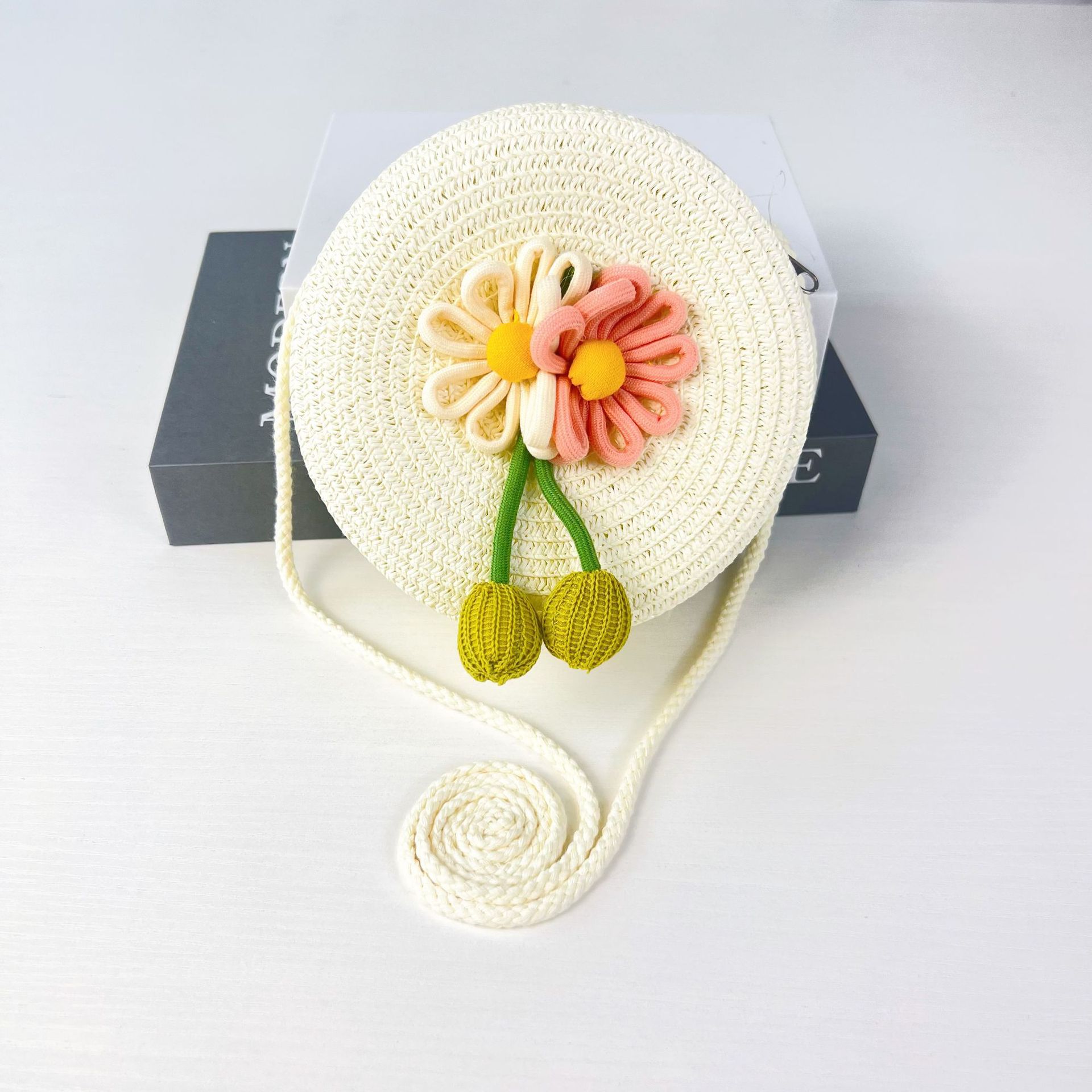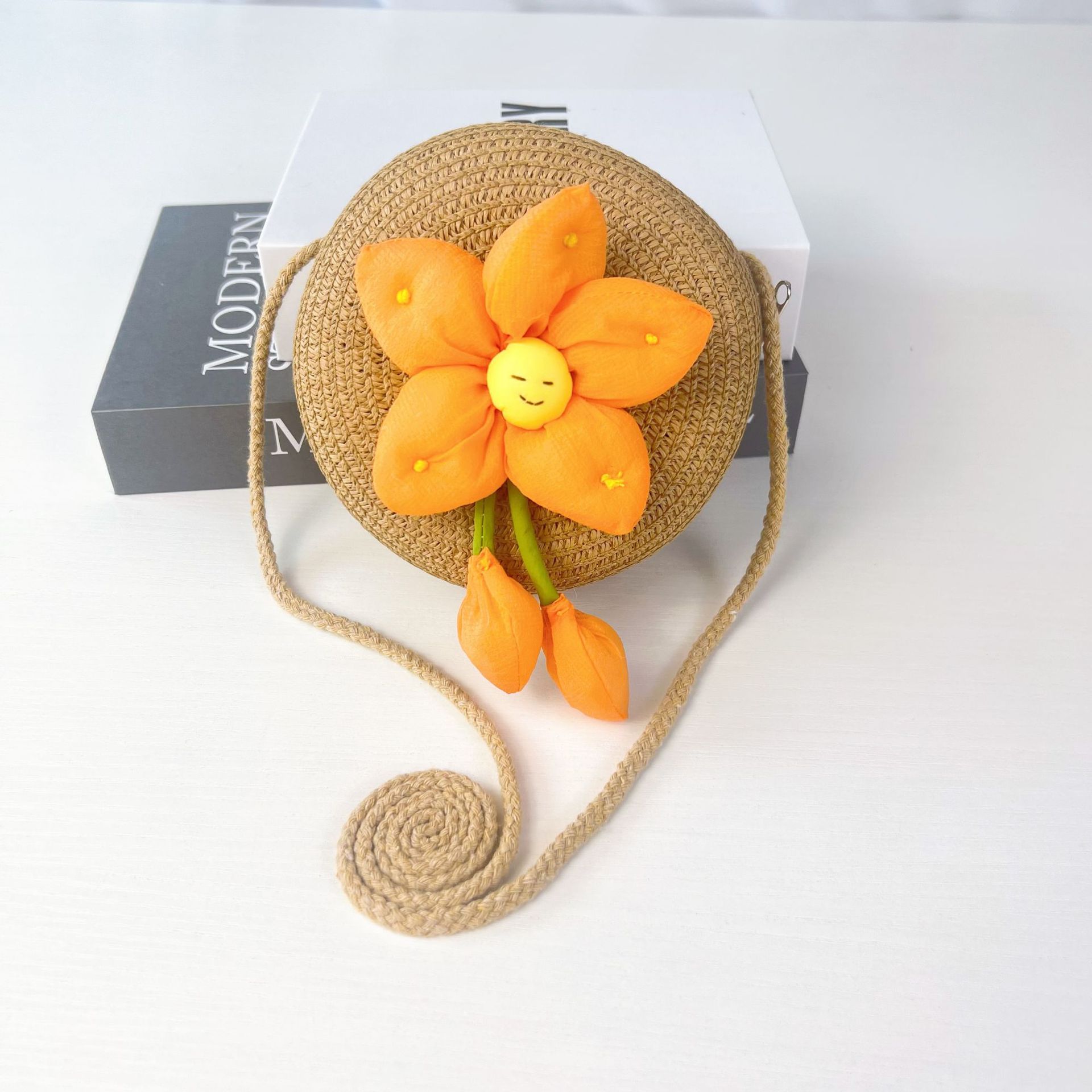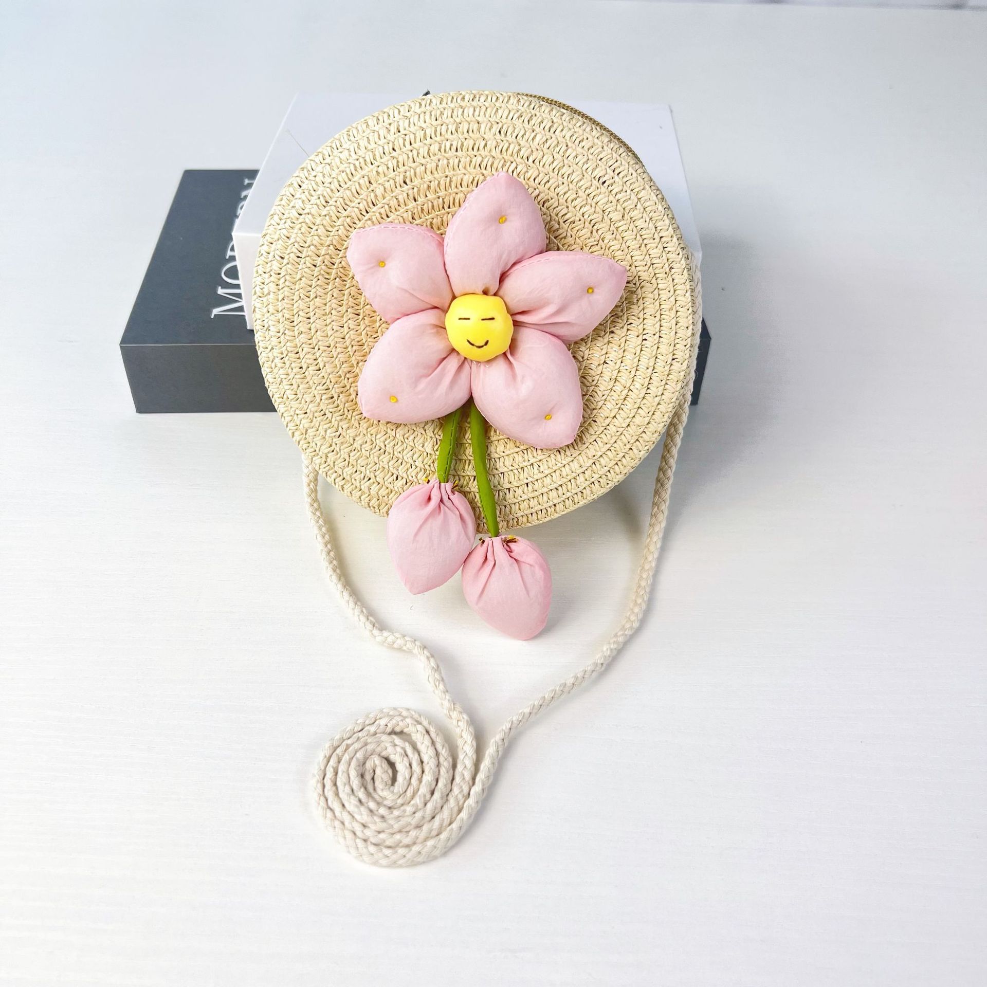어린이 꽃과 잔디로 짠 대형 원형 가방 16CM 소녀 귀여운 작은 크로스 바디 동전 지갑 해변 달콤한 명소 도매스토어 가기