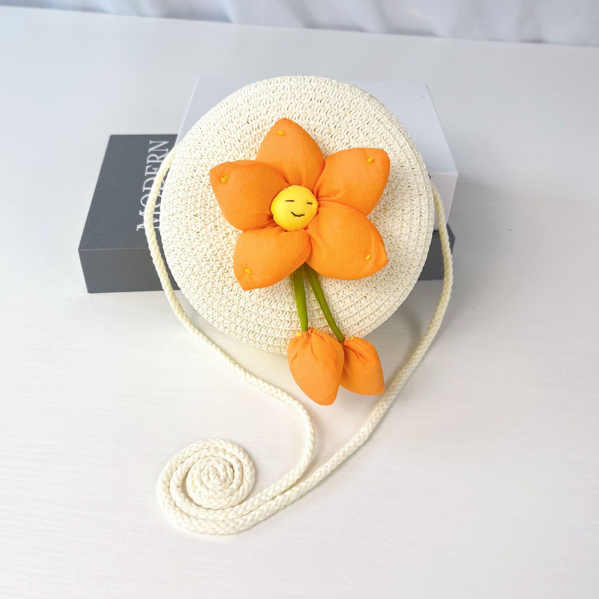 • 오렌지 스마일리 플라워 밀크 화이트 라운드 백