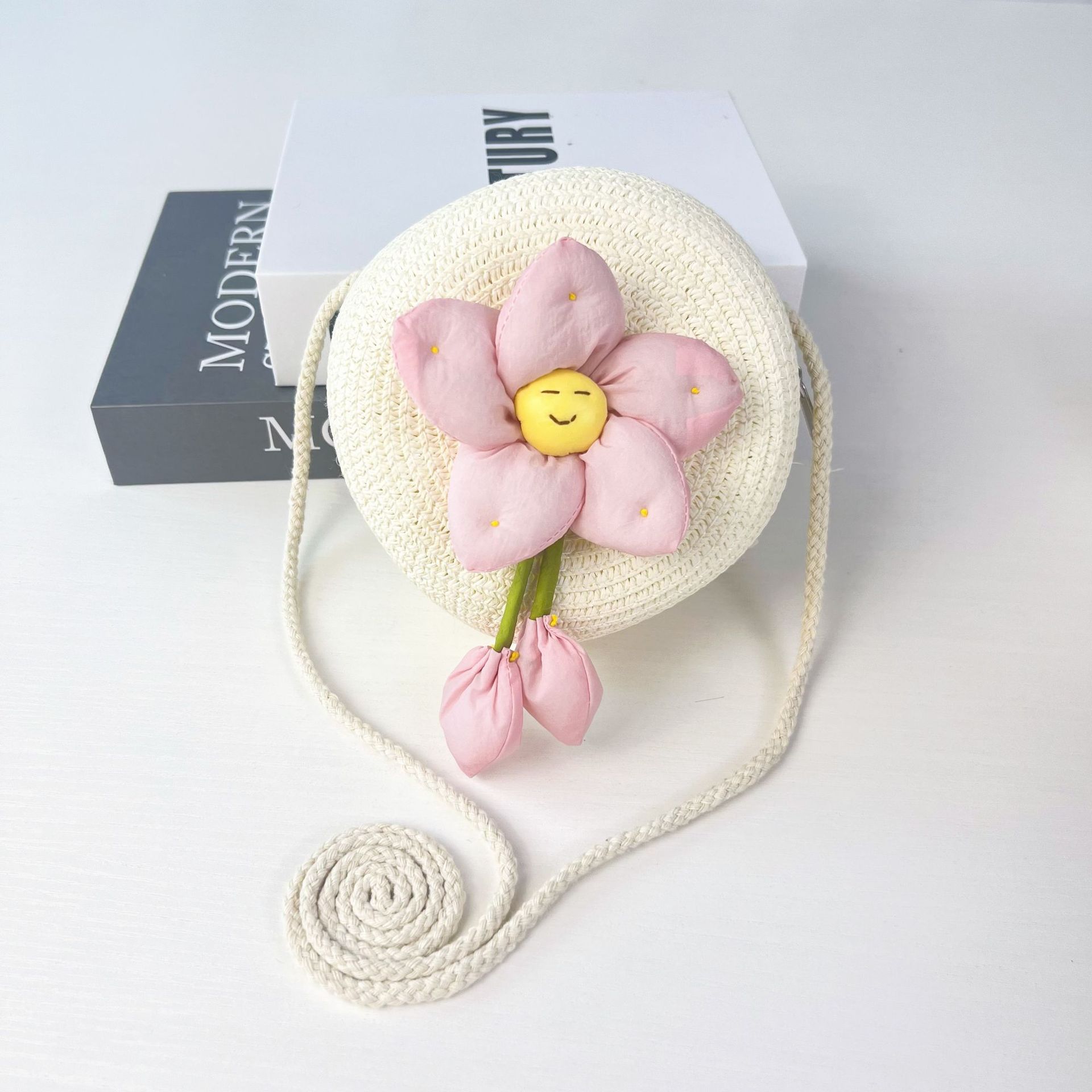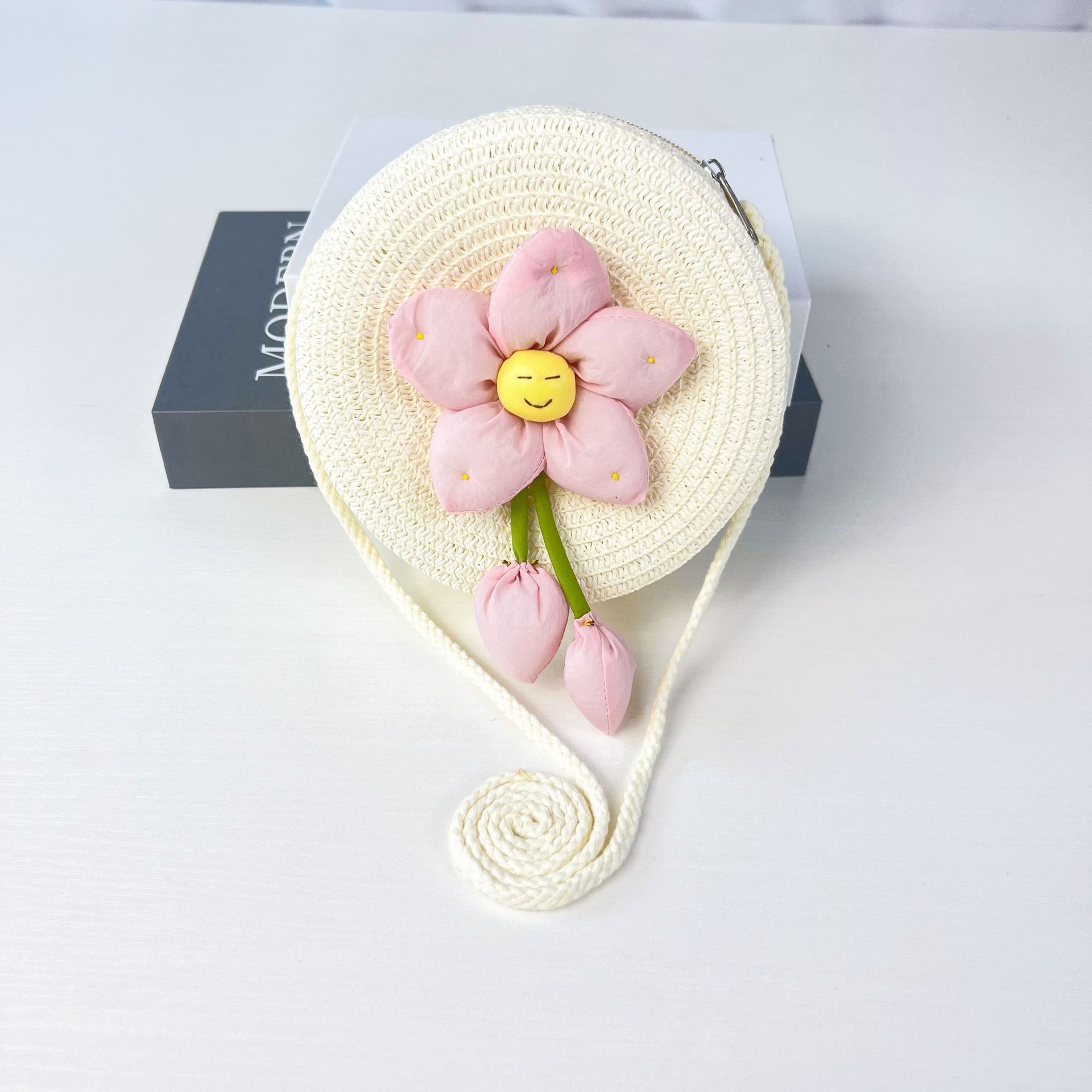 • 핑크 스마일리 플라워 밀크 화이트 라운드 백