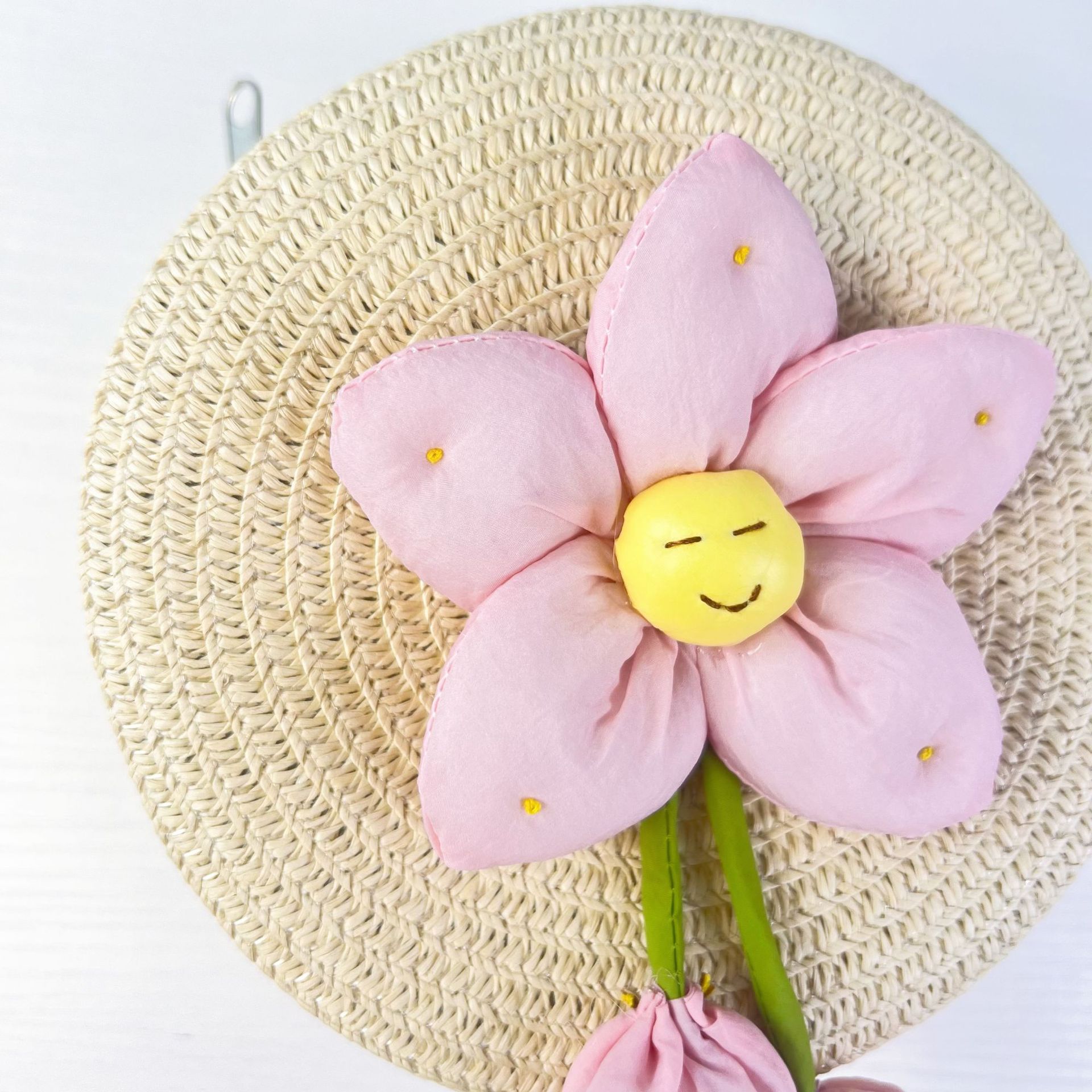 • 핑크 스마일리 플라워 베이지 라지 라운드 백