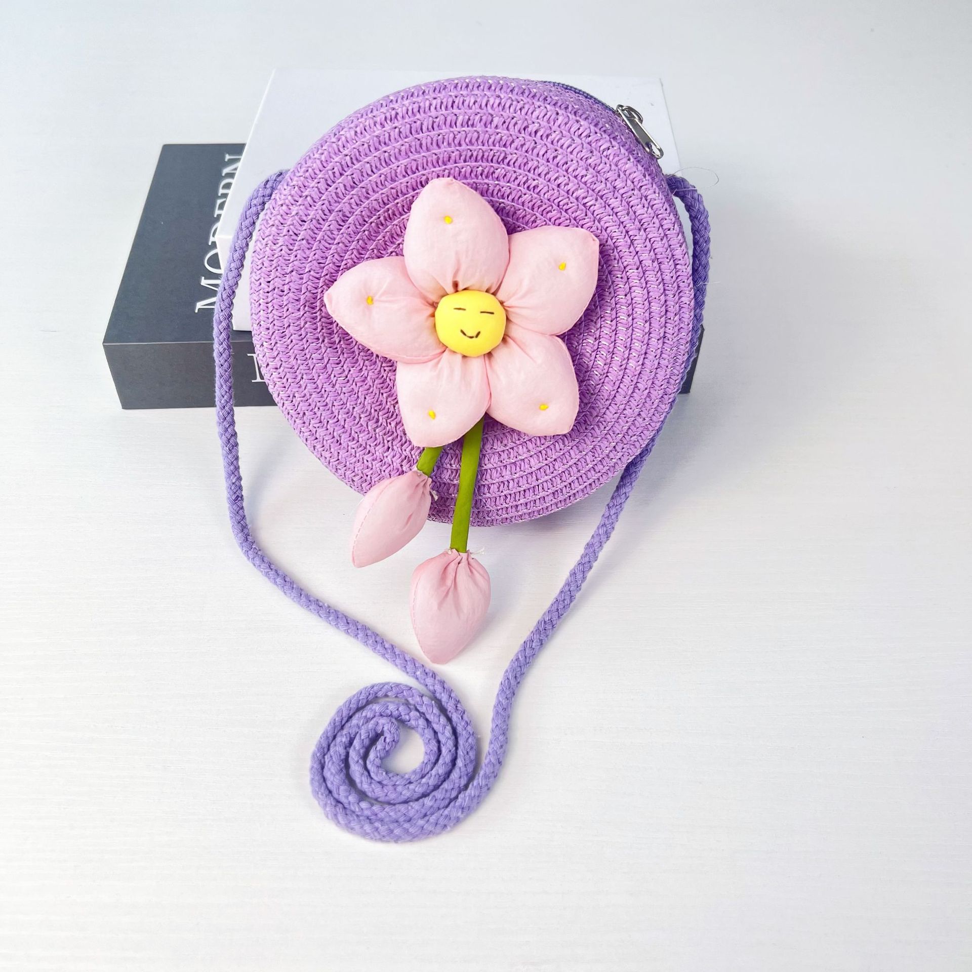 어린이 꽃과 잔디로 짠 대형 원형 가방 16CM 소녀 귀여운 작은 크로스 바디 동전 지갑 해변 달콤한 명소 도매