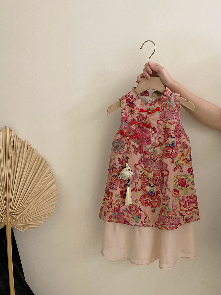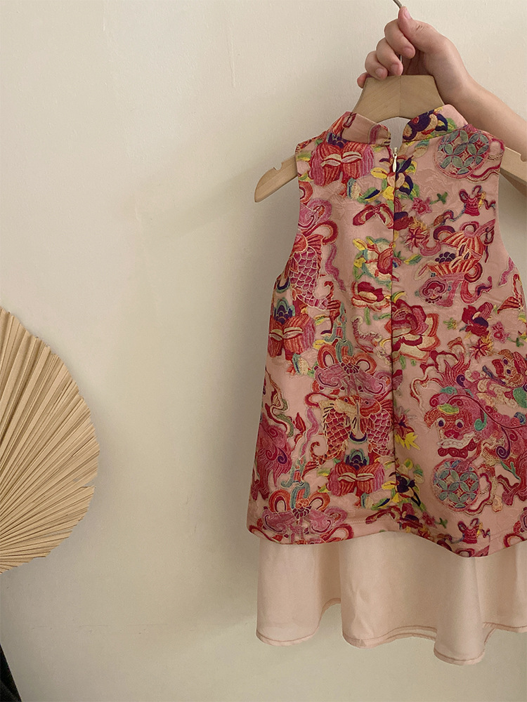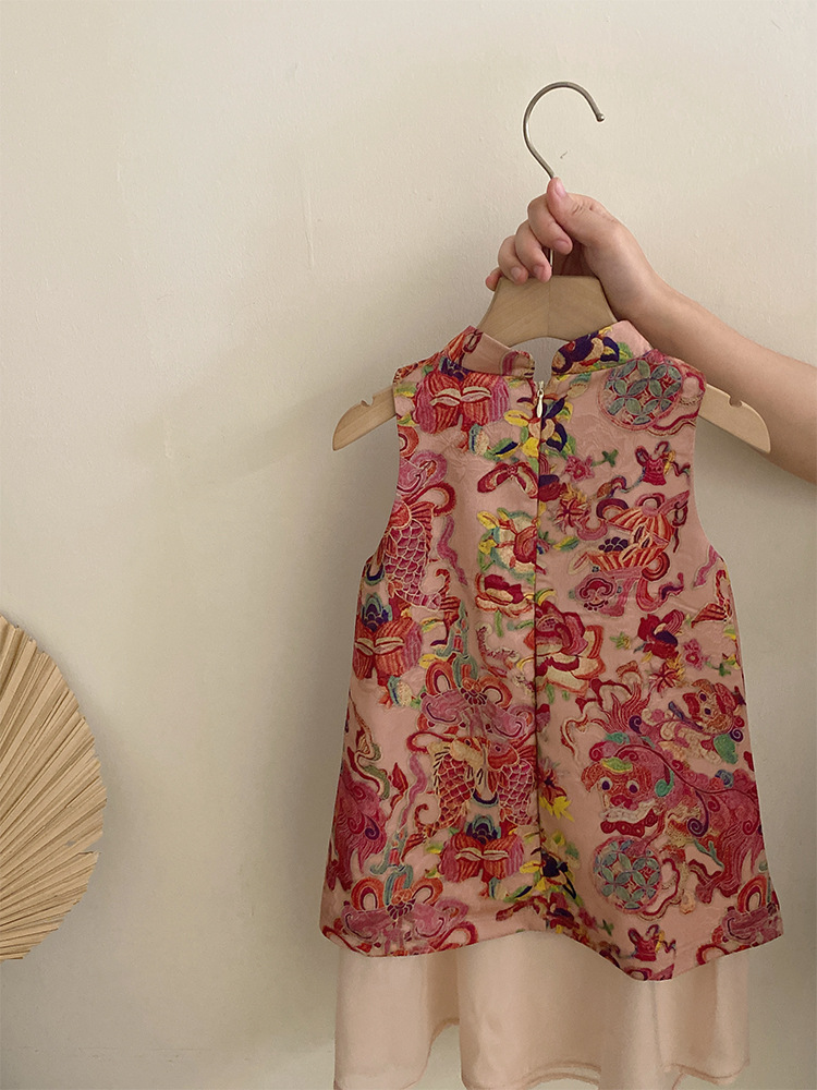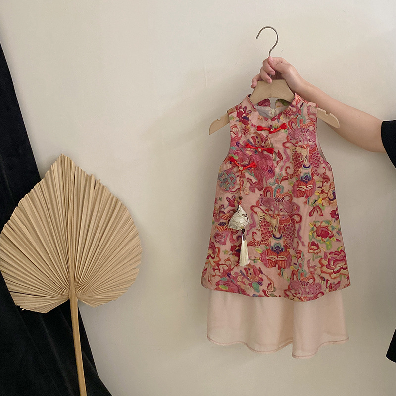 새로운 중국 조끼 여성 하이 엔드 여름 우아한 국가 스타일 조끼 빈티지 민소매 셔츠 어린이 원피스 패션