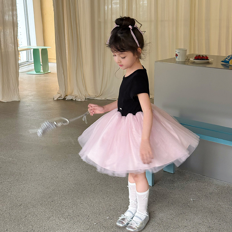 Aimo Beibei 어린이 기질 발레 투투 스커트 소녀 여름과 한국 스타일 대비 색상 반팔 공주 드레스스토어 가기