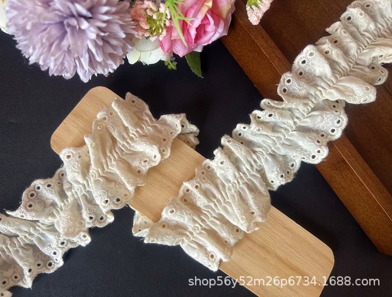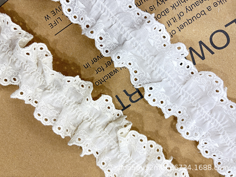 절묘한 순수 코튼 양면 물결 모양의 주름 면화 자수 레이스 의류 액세서리 공예 장식 벨트 재고 있음 도매스토어 가기