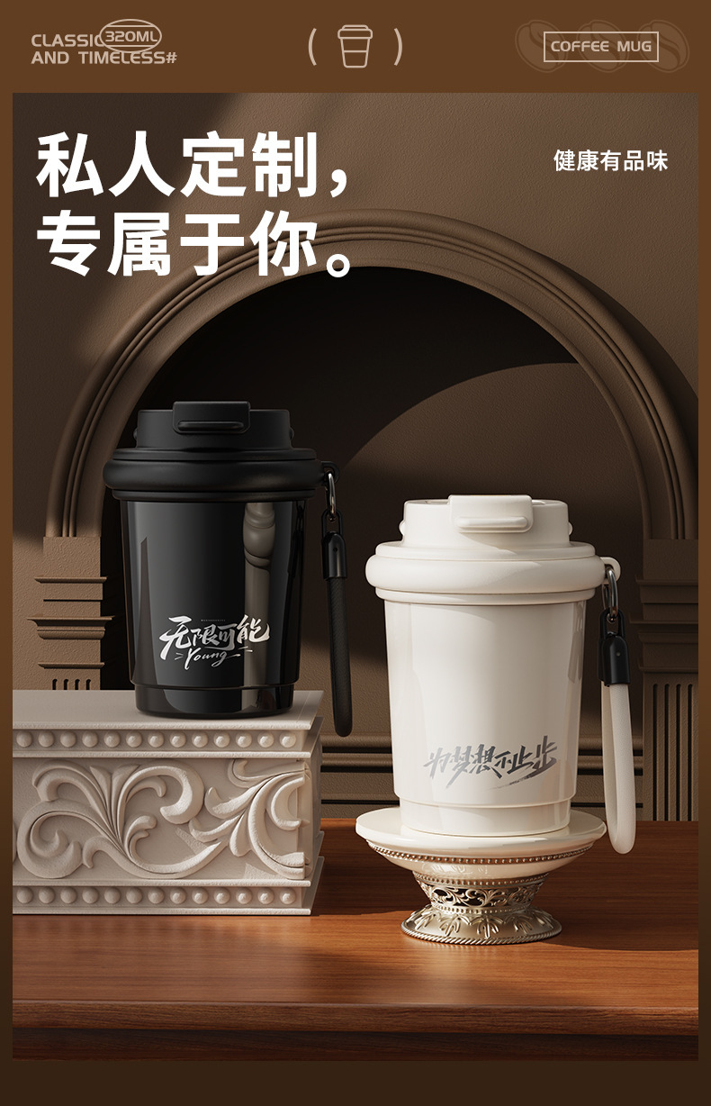 고급스러운 세라믹 내부 보온컵 커피컵 귀여운 학생용 컵 남녀공용 휴대용 304 스테인리스 물컵