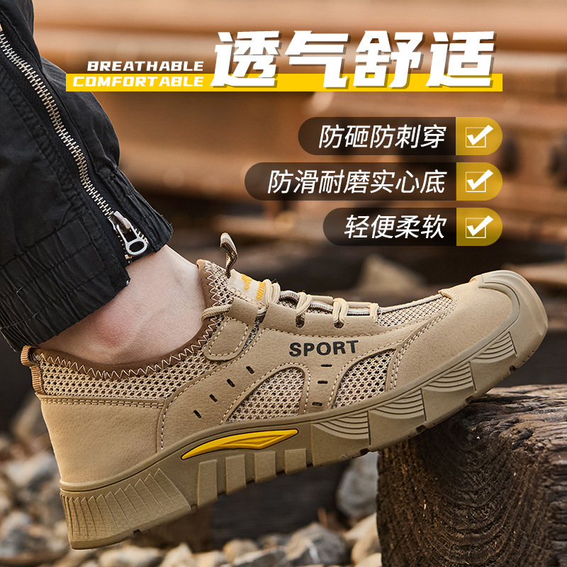 남성용 여름 통기성, 충격 방지, 펑크 방지, 내마모성, 견고한 바닥, 경량, 탈취제 건설 현장 작업 안전화스토어 가기