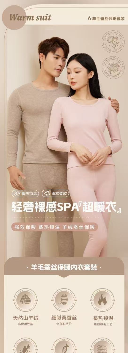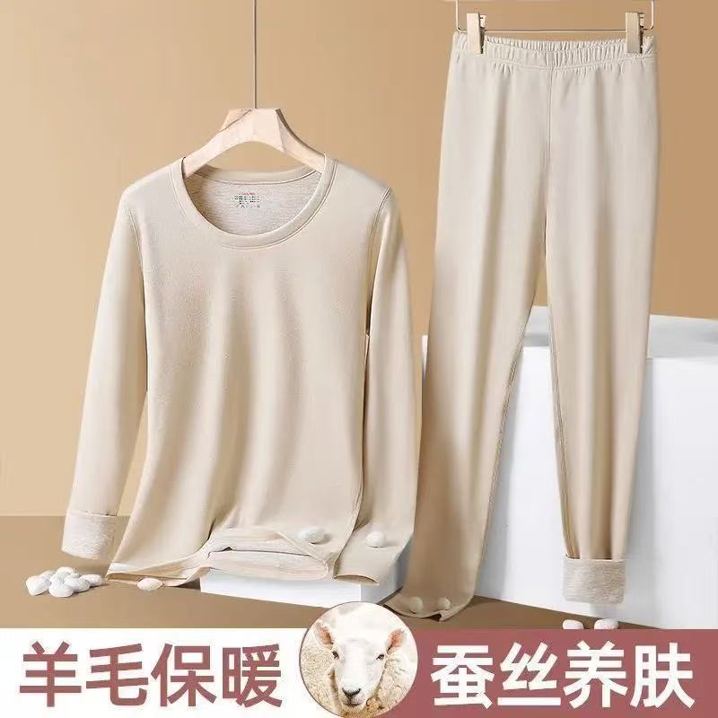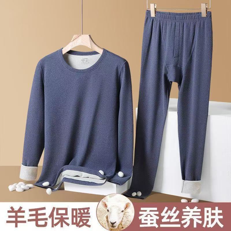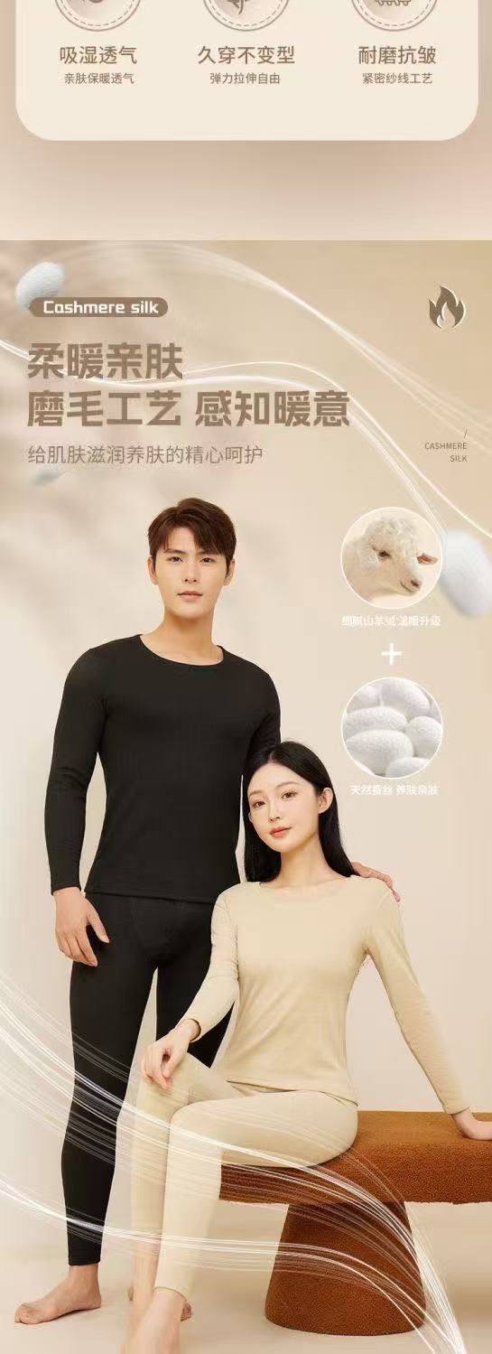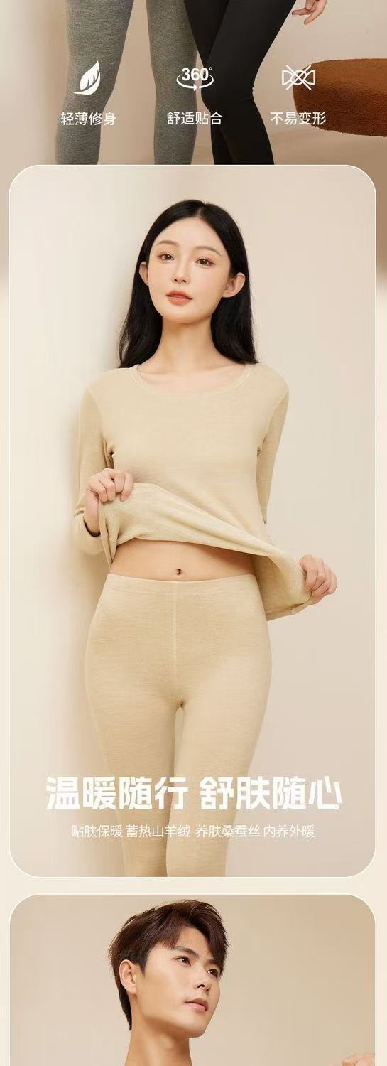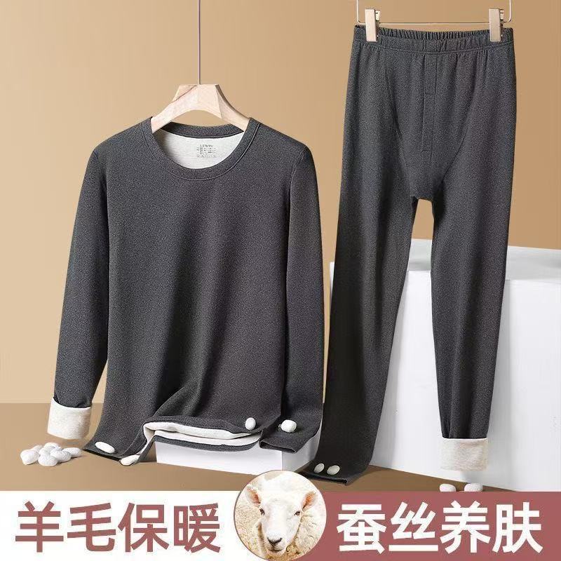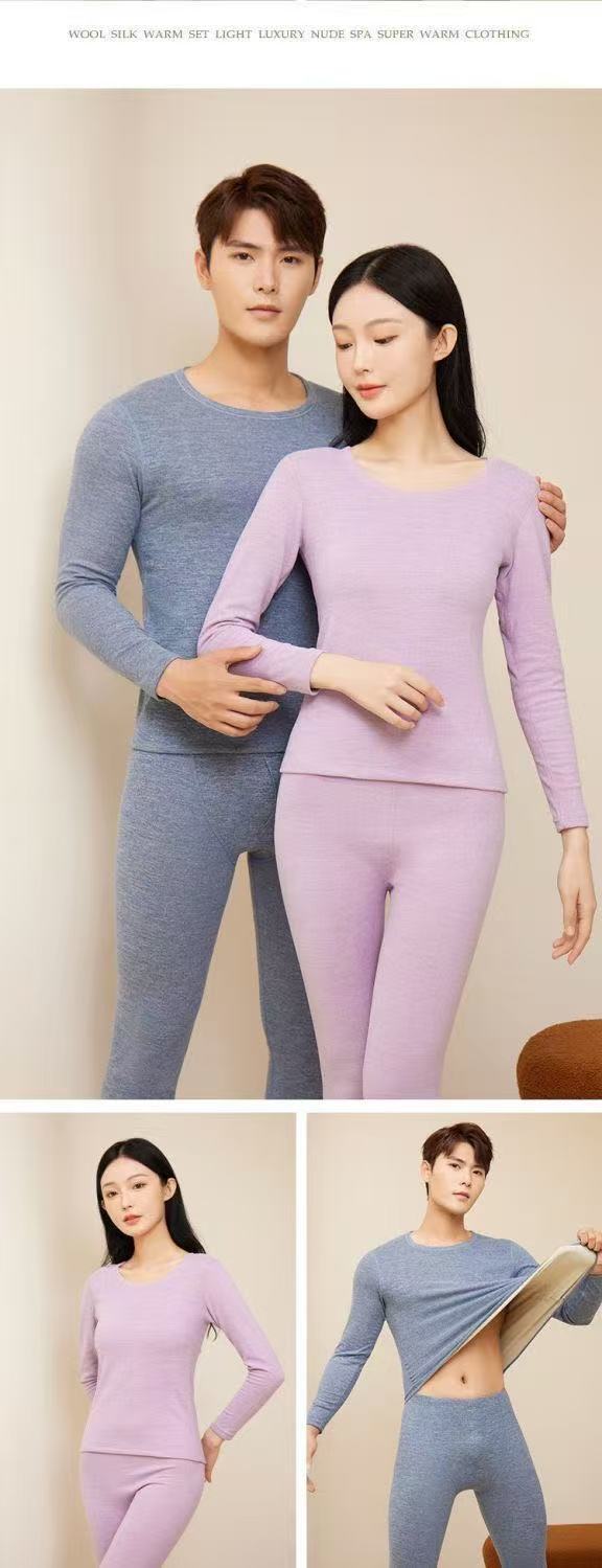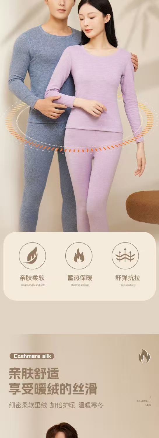 가을 겨울 커플용 플러시 실크 보온 속옷 세트 남녀 공용 양면 기모 두꺼운 가을옷스토어 가기