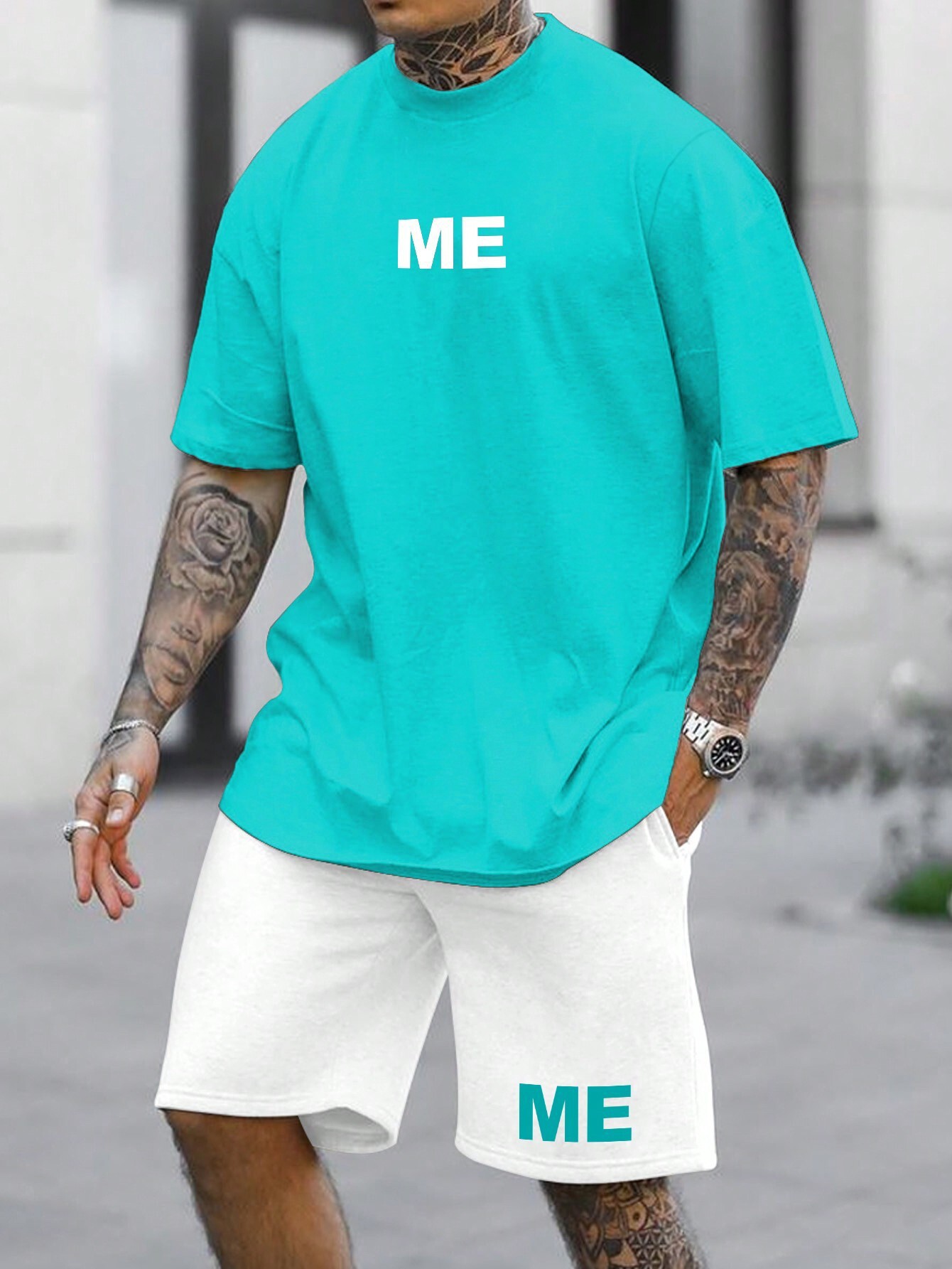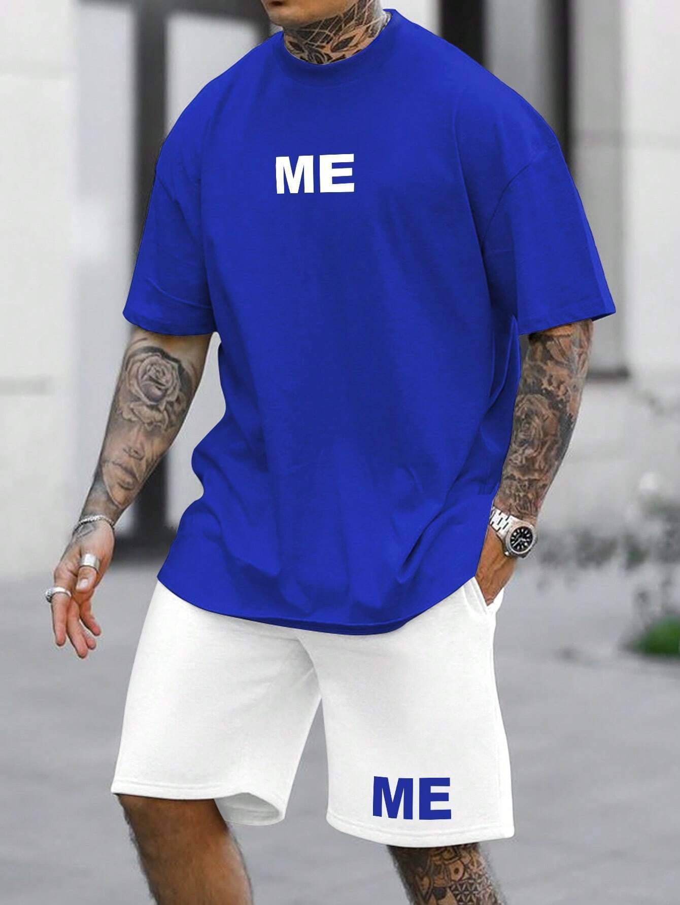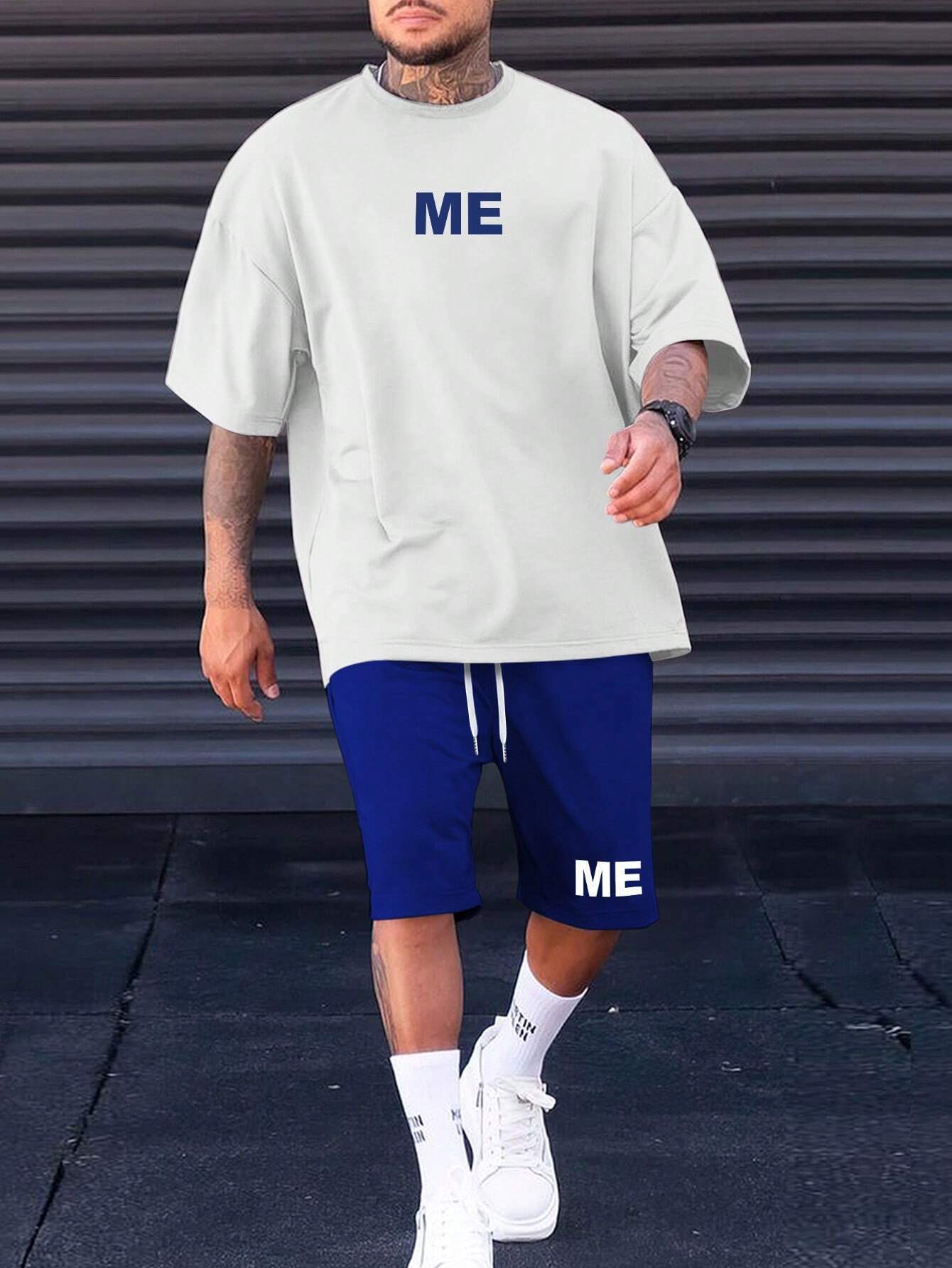국경 간 여름 새로운 간단한 스포츠 및 레저 정장 남성용 반팔 티셔츠와 반바지 3D 인쇄스토어 가기