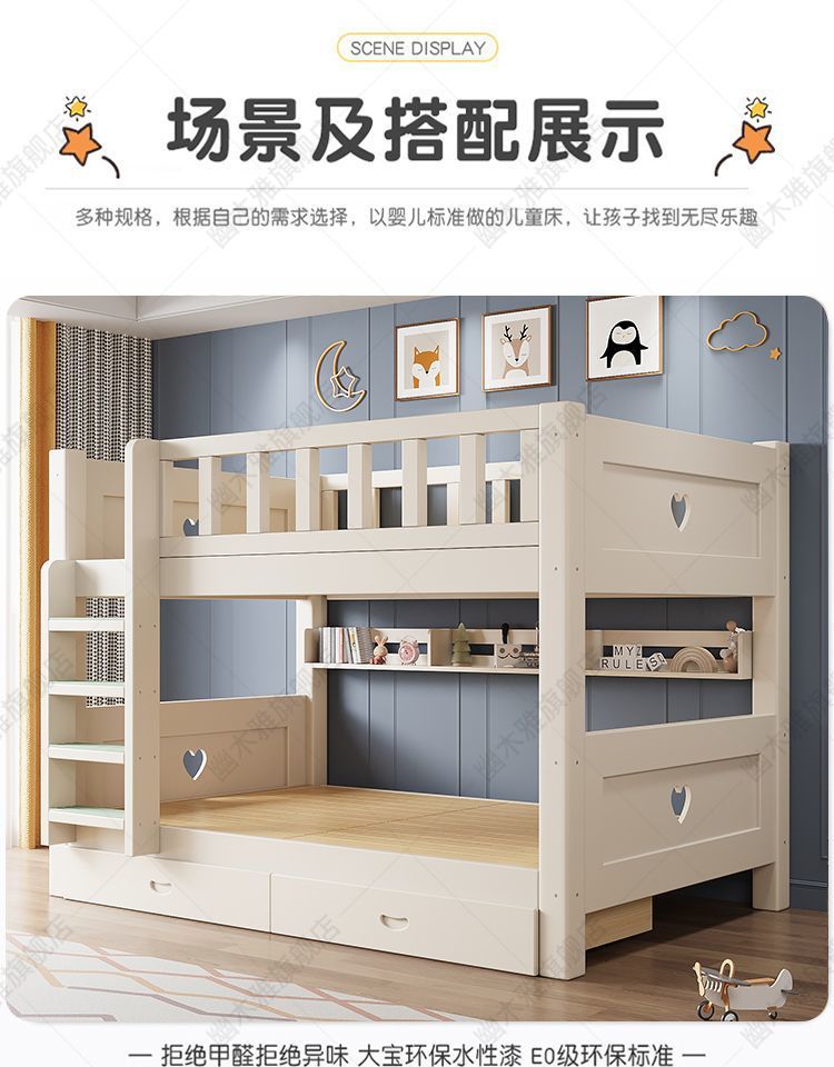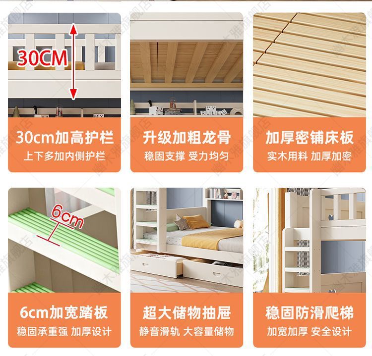 원목 어린이 침대, 성인용 이층 침대, 성인용 이층 침대, 높낮이 다기능 소형 2층 침대스토어 가기