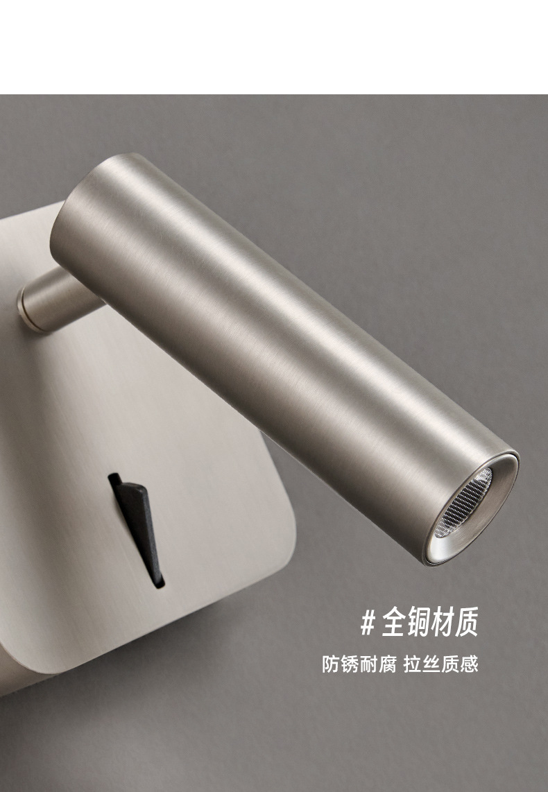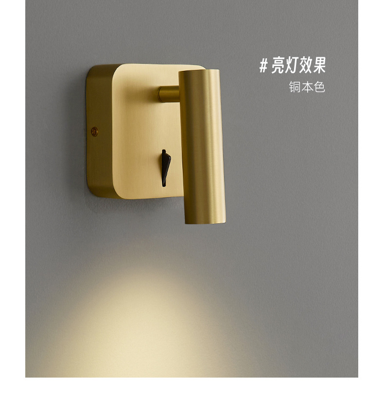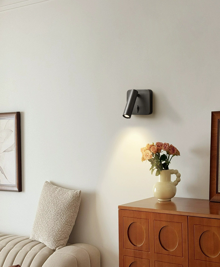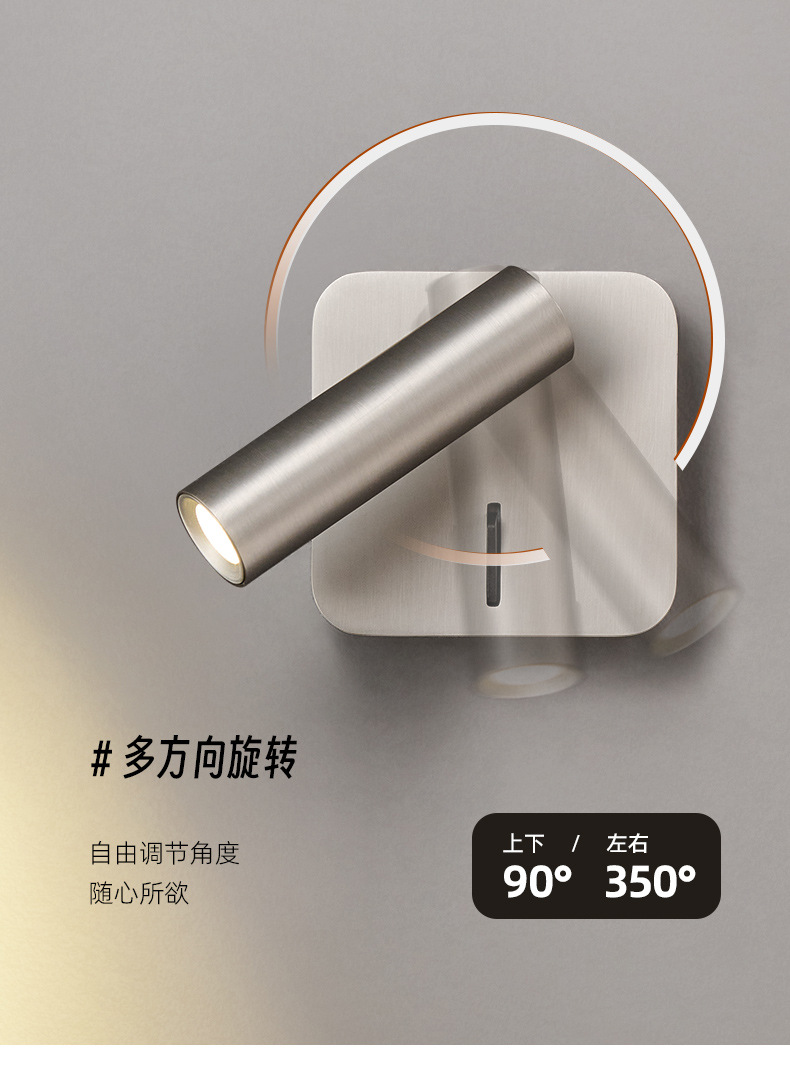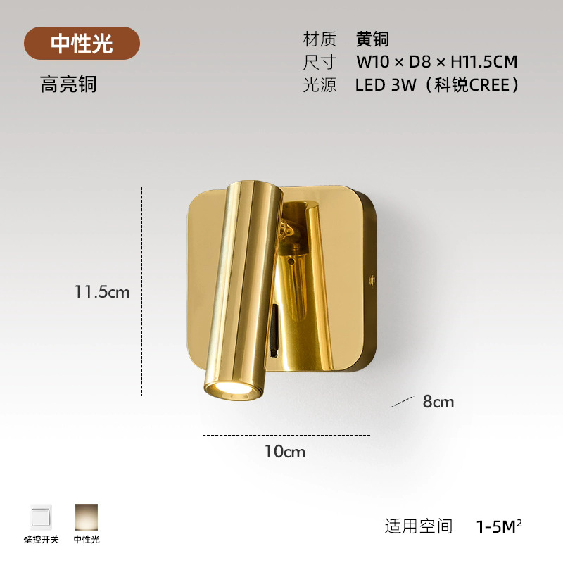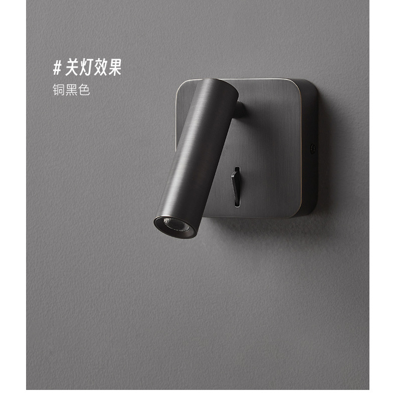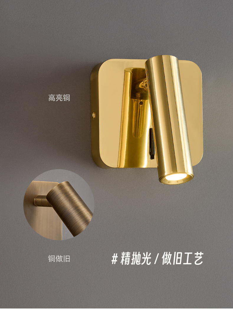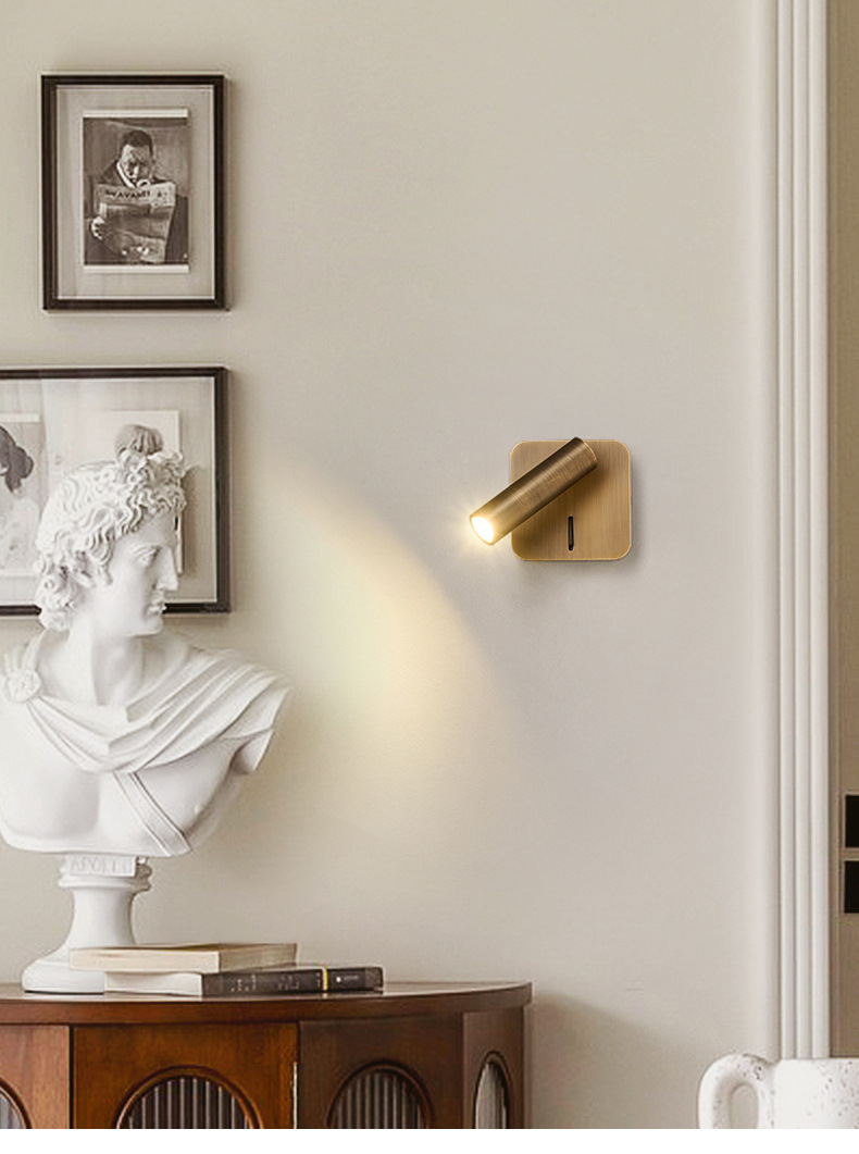 스위치가 내장된 침대 옆 벽 램프, 독서 및 학습을 위한 회전식 스포트라이트, 눈 보호 스포트라이트, 이탈리안 미니멀리스트 마스터 침실 벽 램프