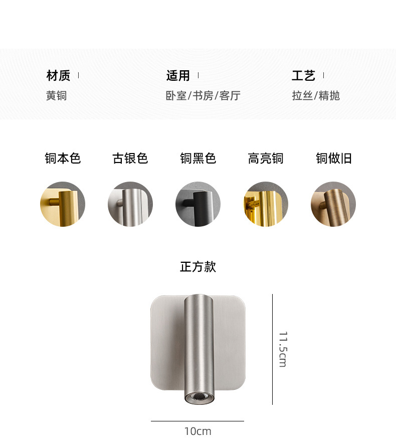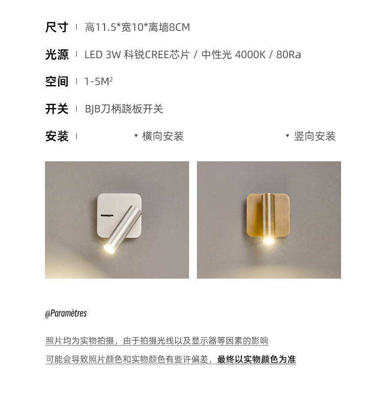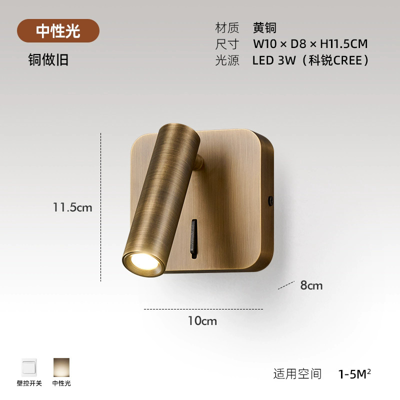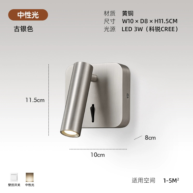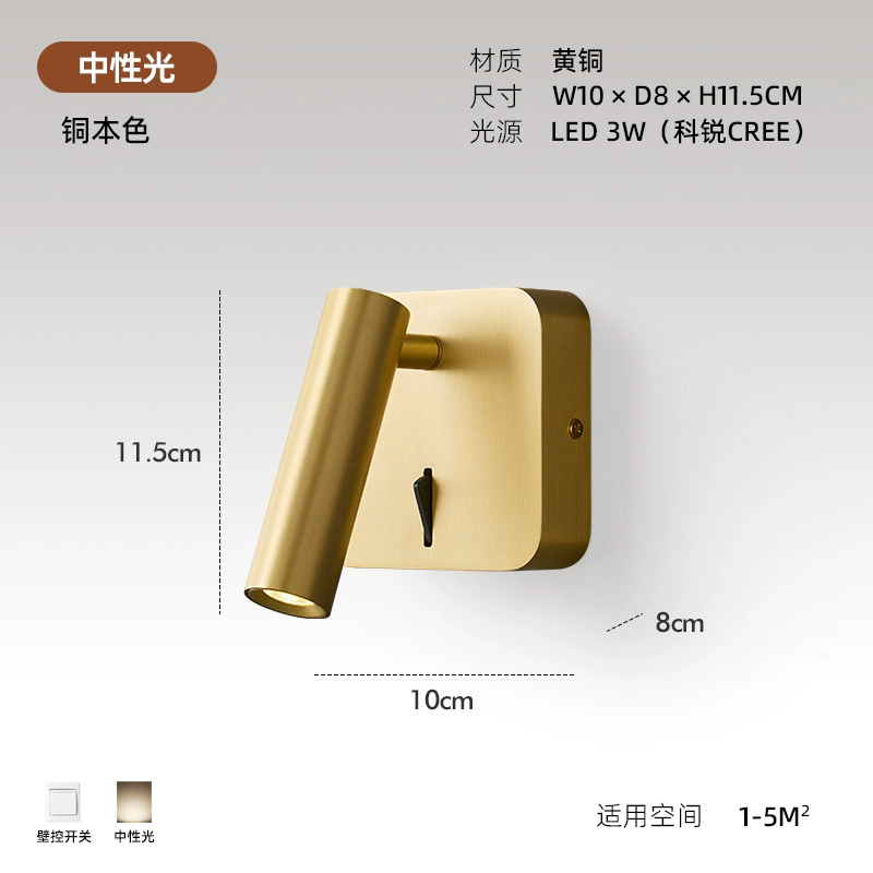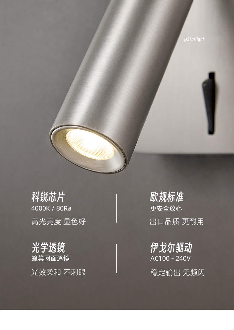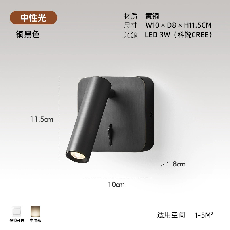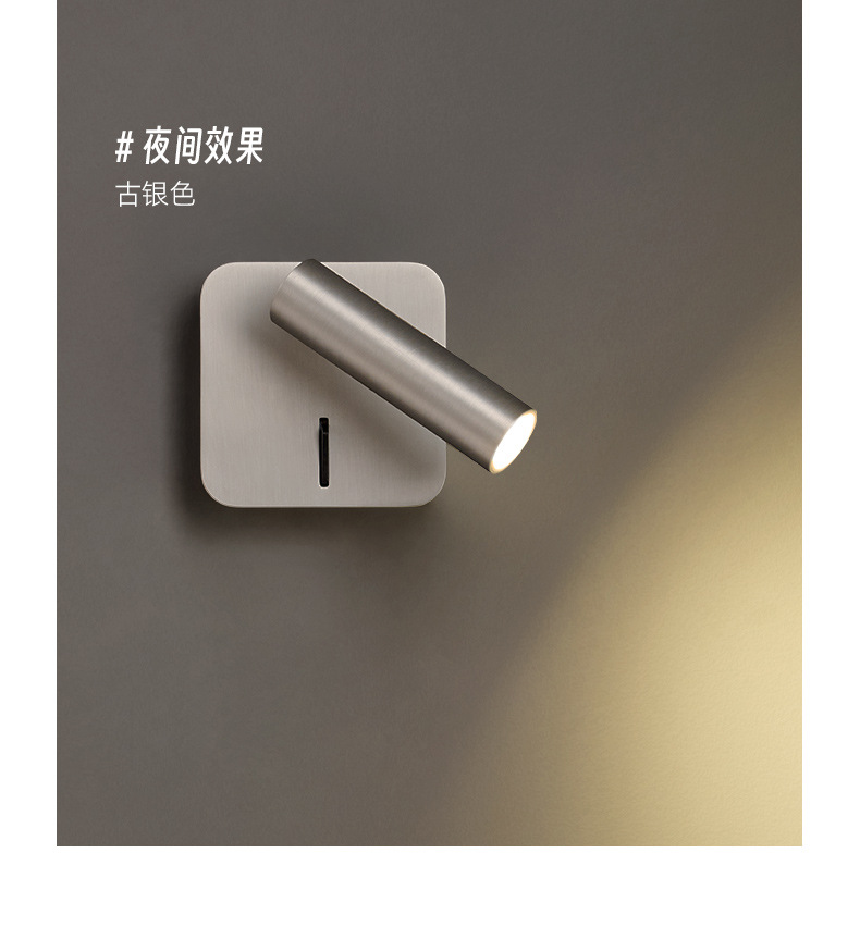 스위치가 내장된 침대 옆 벽 램프, 독서 및 학습을 위한 회전식 스포트라이트, 눈 보호 스포트라이트, 이탈리안 미니멀리스트 마스터 침실 벽 램프