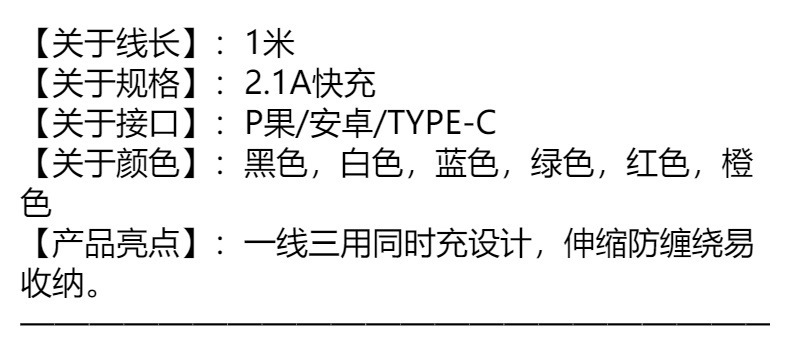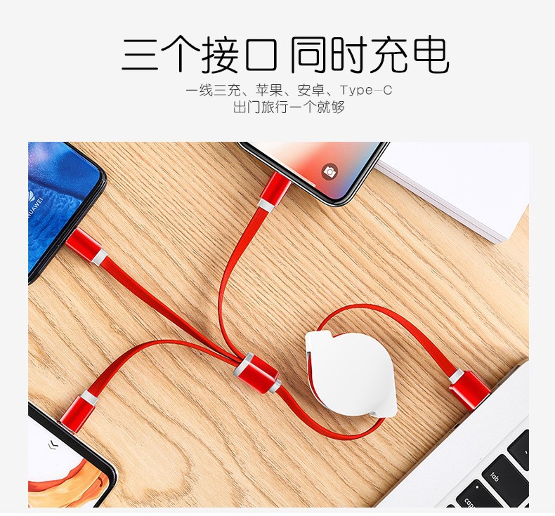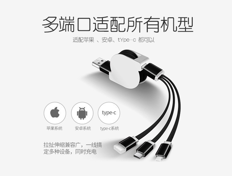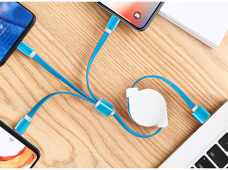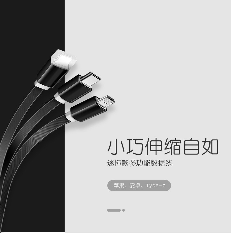Type-c Android에 적합한 1-3 개의 접이식 데이터 케이블 고속 충전 3-in-1 다기능 헤드 충전 케이블 1.2m스토어 가기