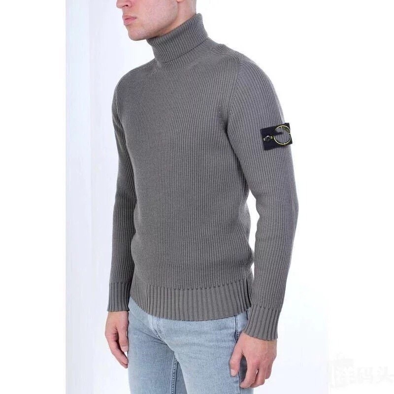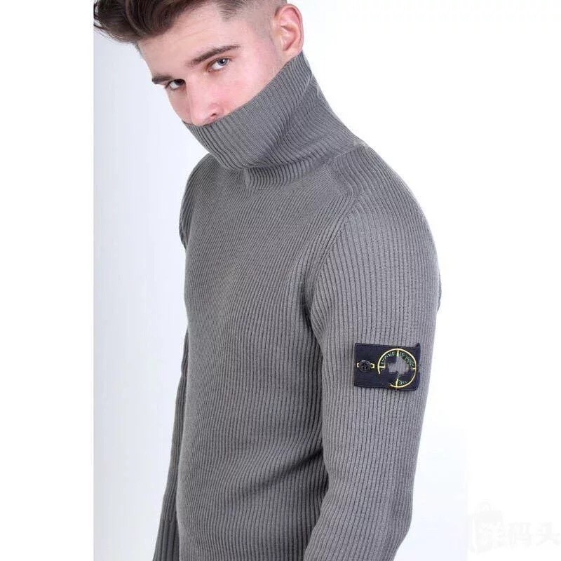 국경 간 STONE 트렌디 브랜드 하이 스트리트 엠블럼 랩 터틀넥 스웨터 두꺼운 따뜻한 남성과 여성 커플 스웨터스토어 가기