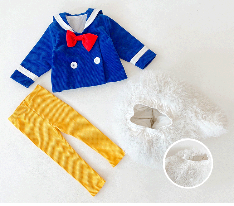 가을 겨울 정장 오리 엉덩이 아기 점프 슈트 귀여운 외출복 도널드 덕 캐릭터 코스프레 의상 공연스토어 가기