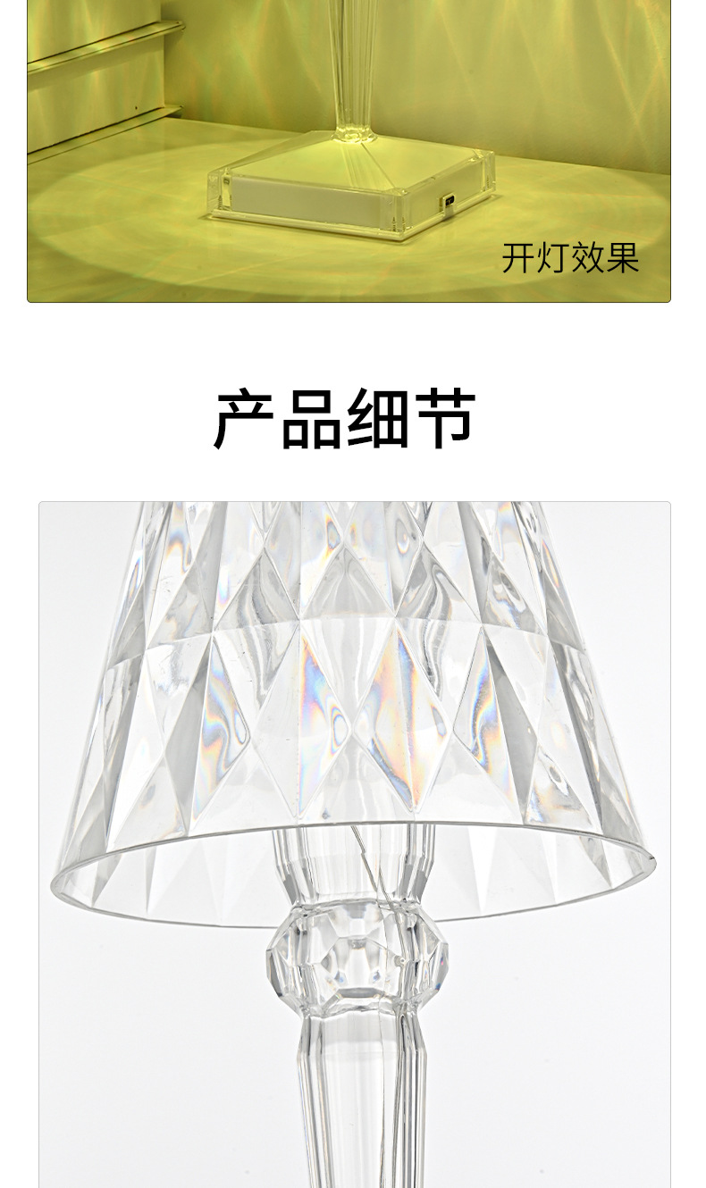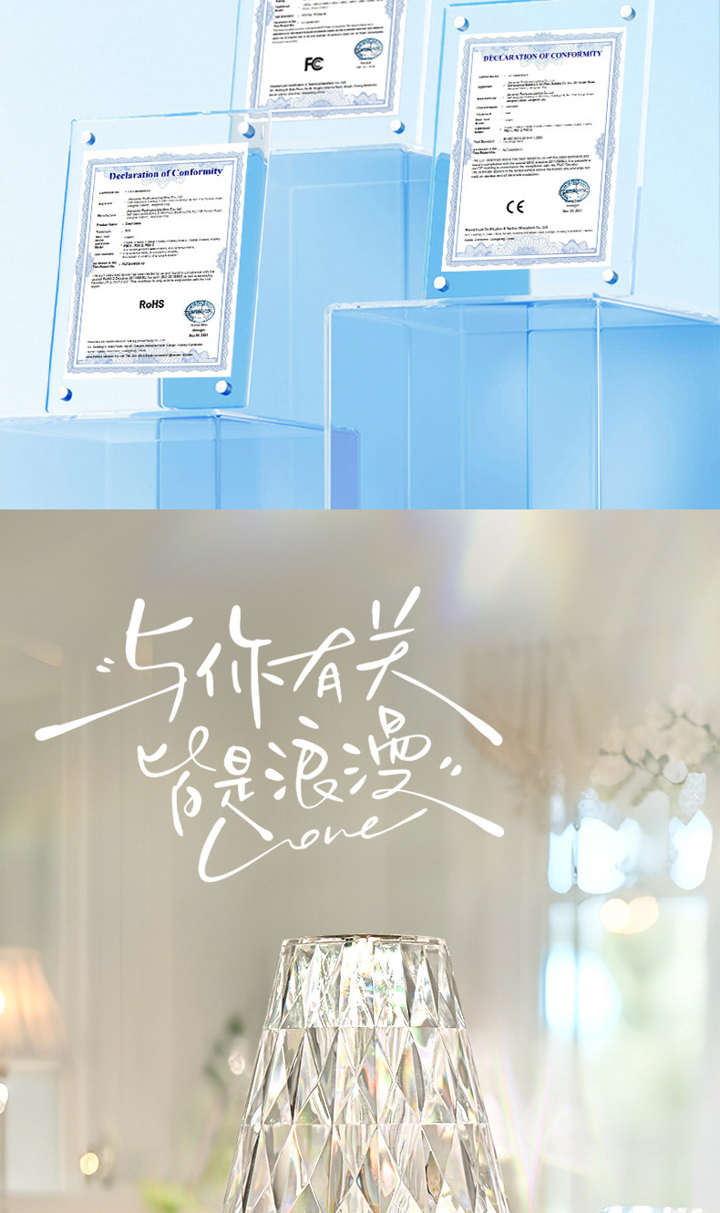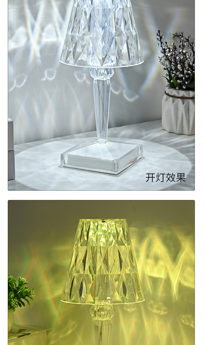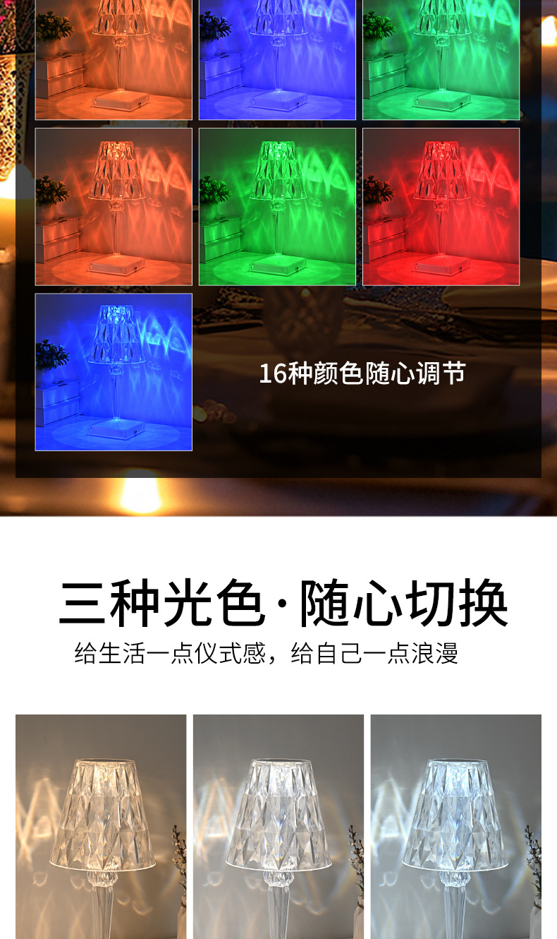 국경 간 인기 판매 다이아몬드 로즈 램프 아크릴 분위기 장식 테이블 램프 크리 에이 티브 터치 침대 옆 충전식 야간 조명