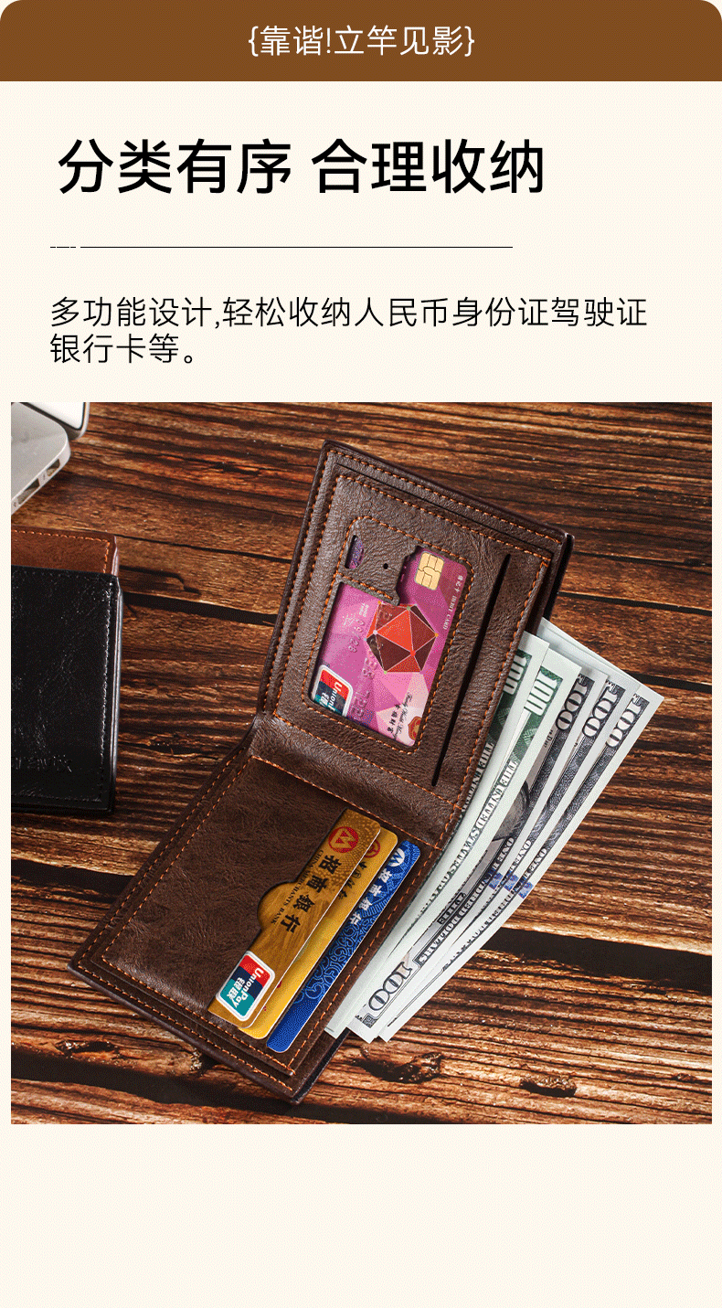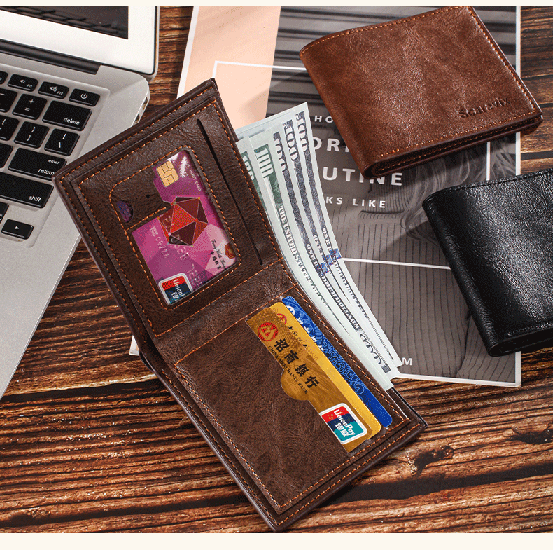 제조 업체의 인기 판매 짧은 남성용 지갑 ID 보관 가방 카드 홀더 반 접힌 가죽 현금 동전 지갑 지갑 도매스토어 가기