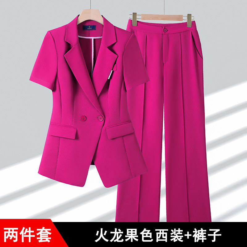 여성을위한 로즈 레드 반팔 정장 여름 2025 새로운 패션 캐주얼 정장 재킷 작은 전문 의류스토어 가기