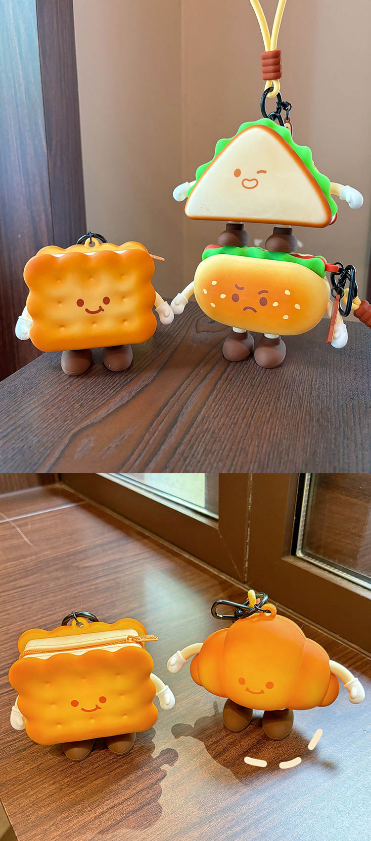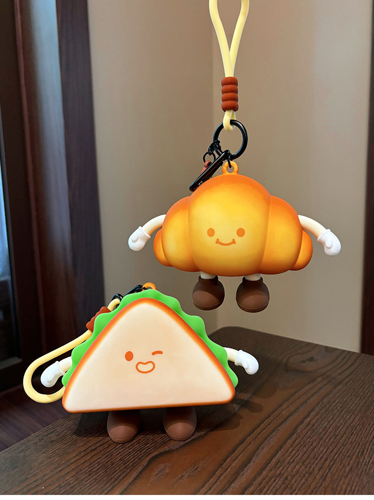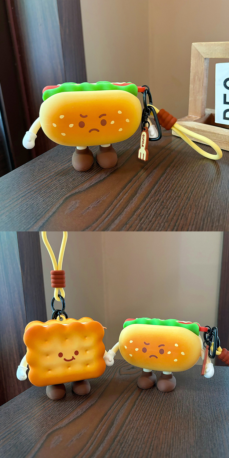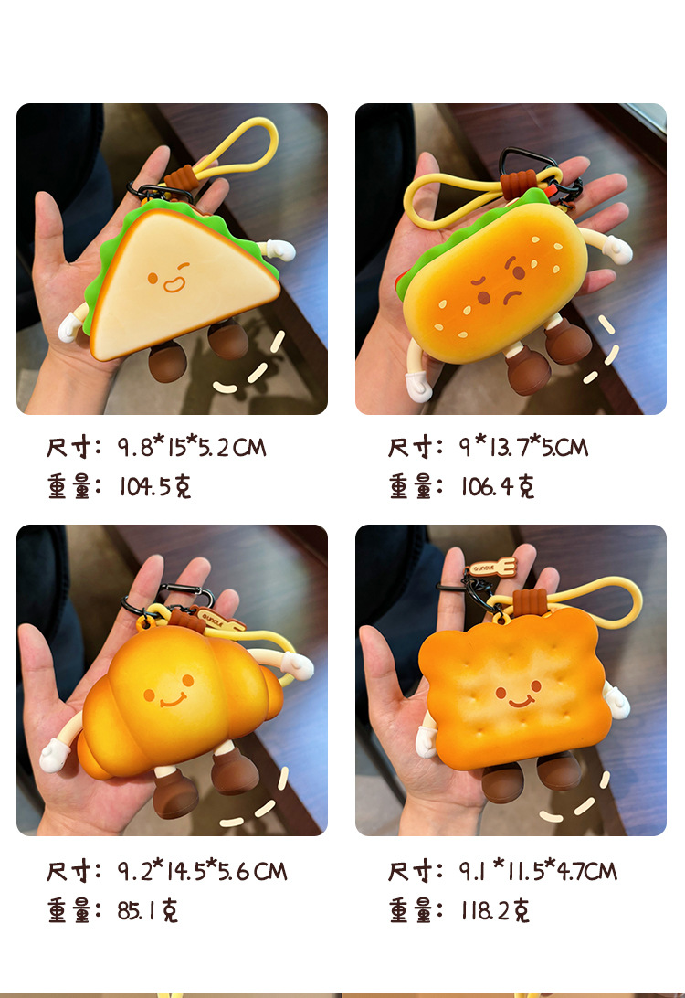 귀여운 애프터눈 티 시리즈 동전 지갑 버거 미니 헤드폰 보관 가방 만화 크로와상 열쇠 가방 펜던트