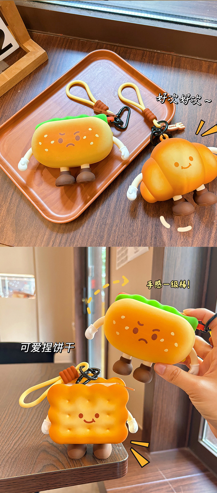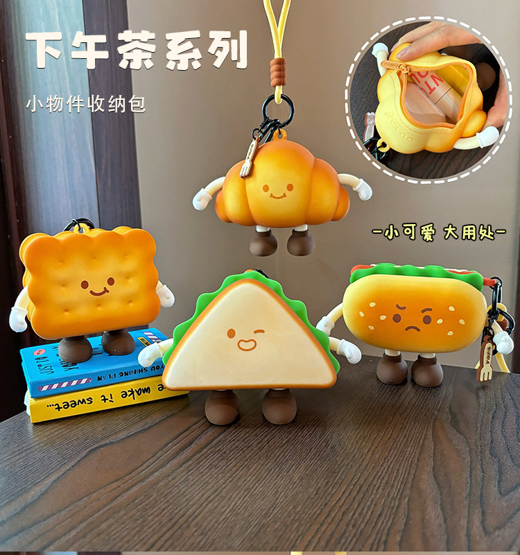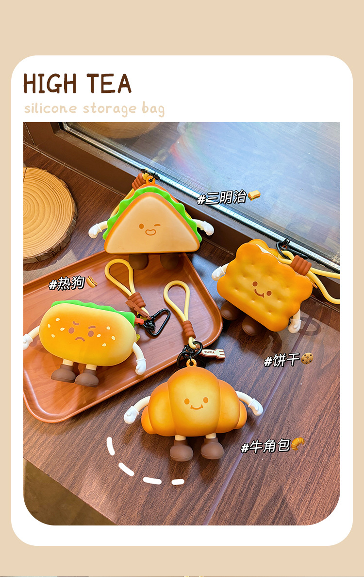 귀여운 애프터눈 티 시리즈 동전 지갑 버거 미니 헤드폰 보관 가방 만화 크로와상 열쇠 가방 펜던트스토어 가기
