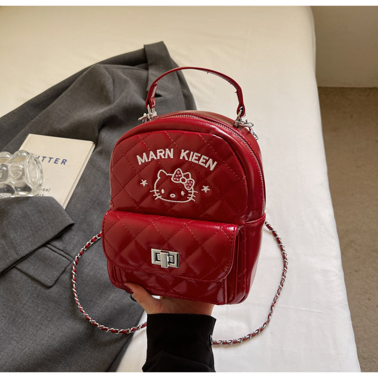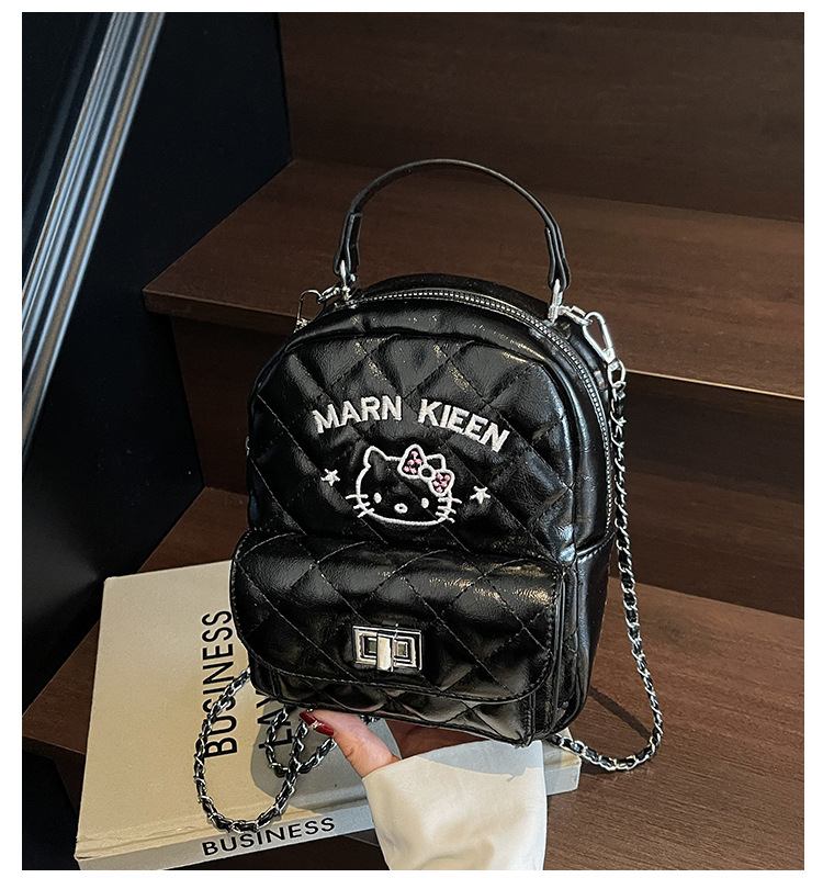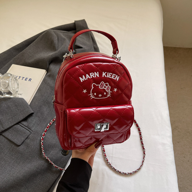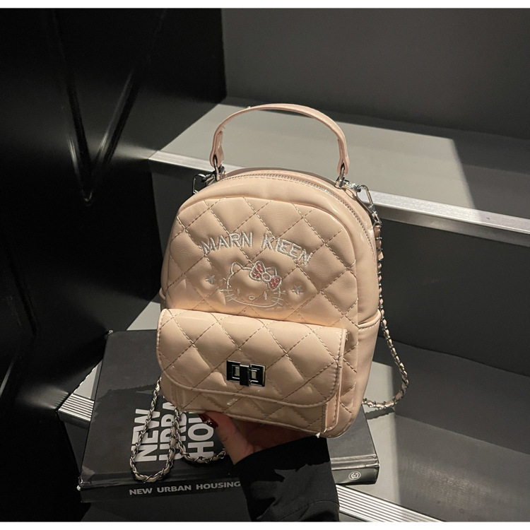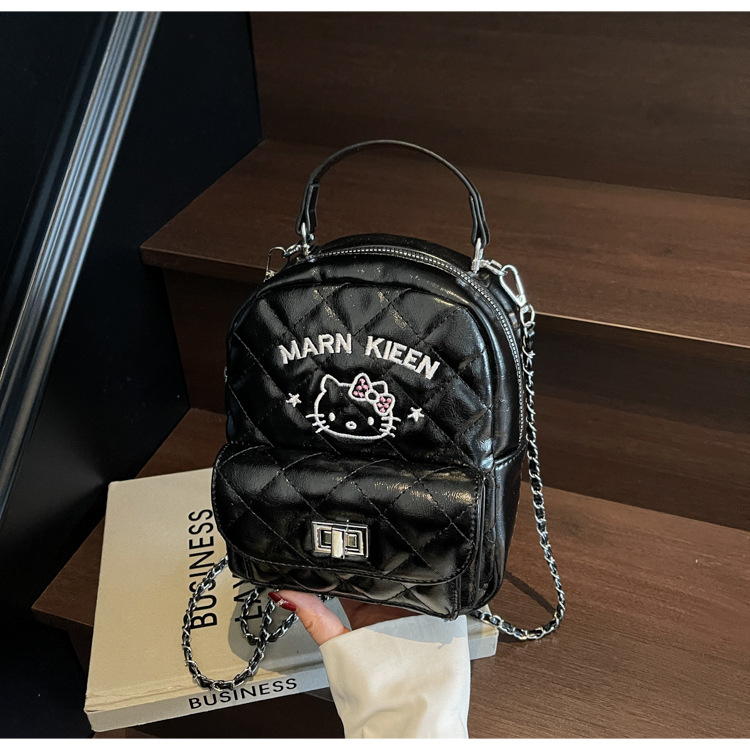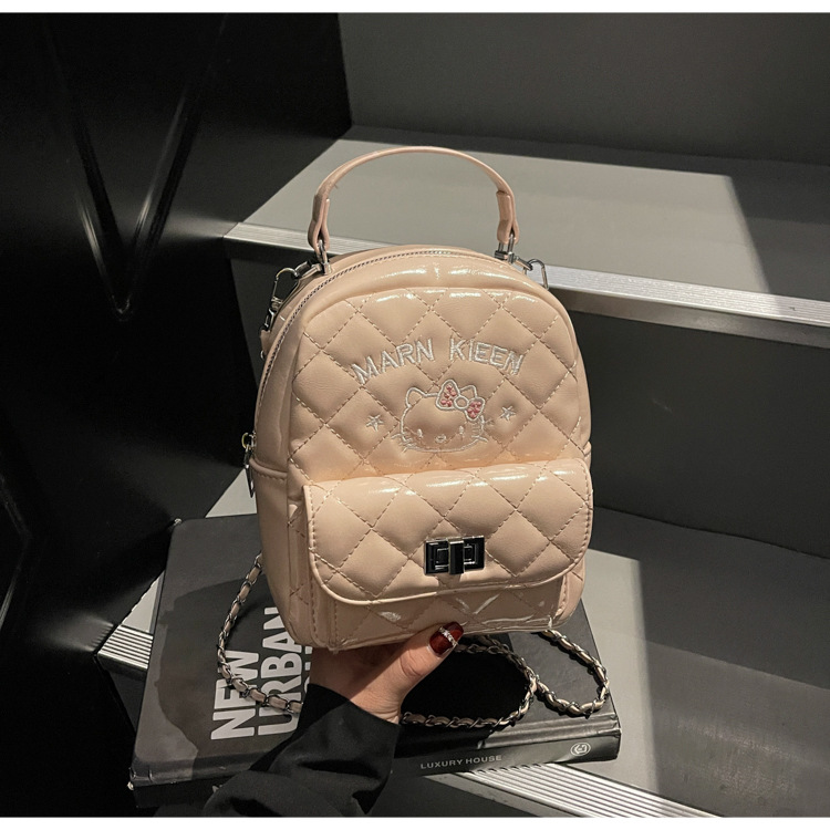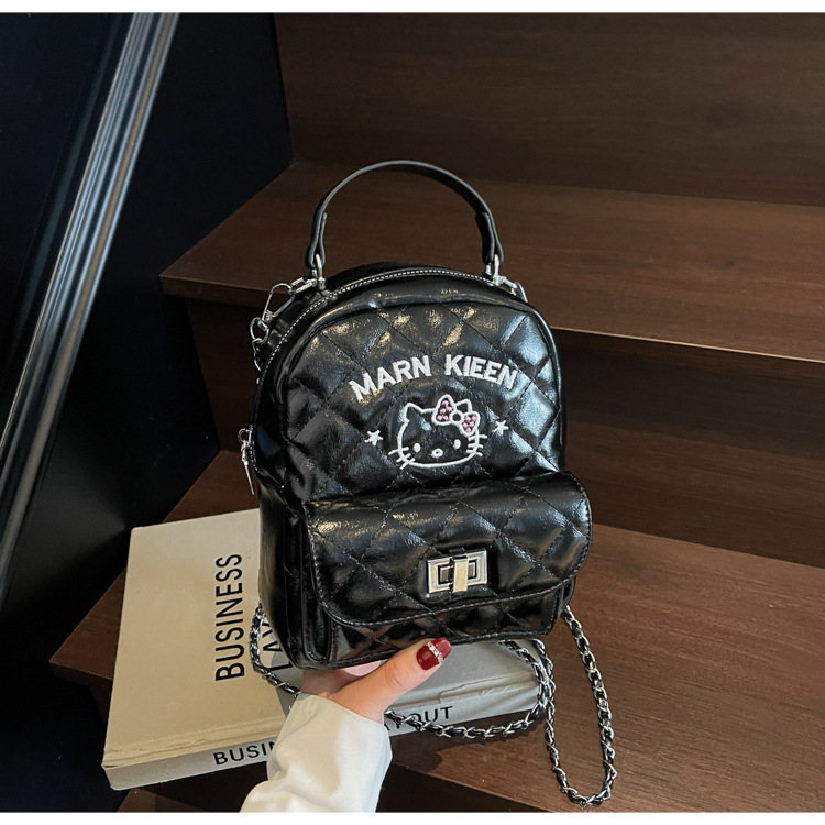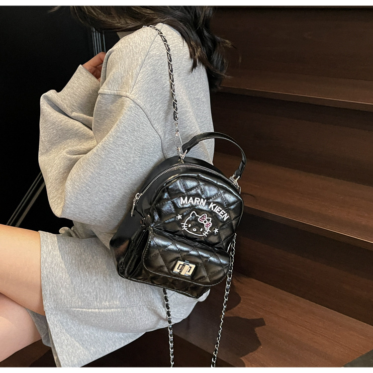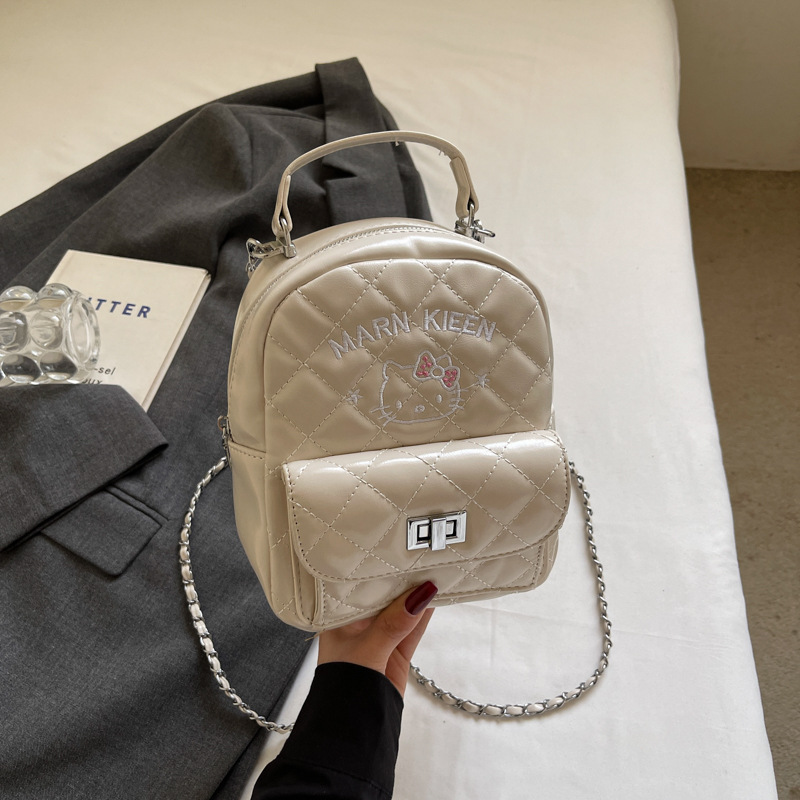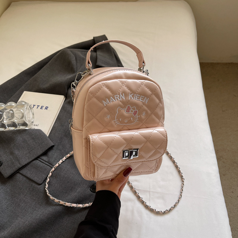 한국어 버전 ins 작은 향기로운 핸드백 귀여운 kt 고양이 프린트 배낭 캐주얼 심플 배낭 트렌디 크로스 바디 백
