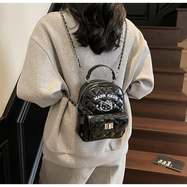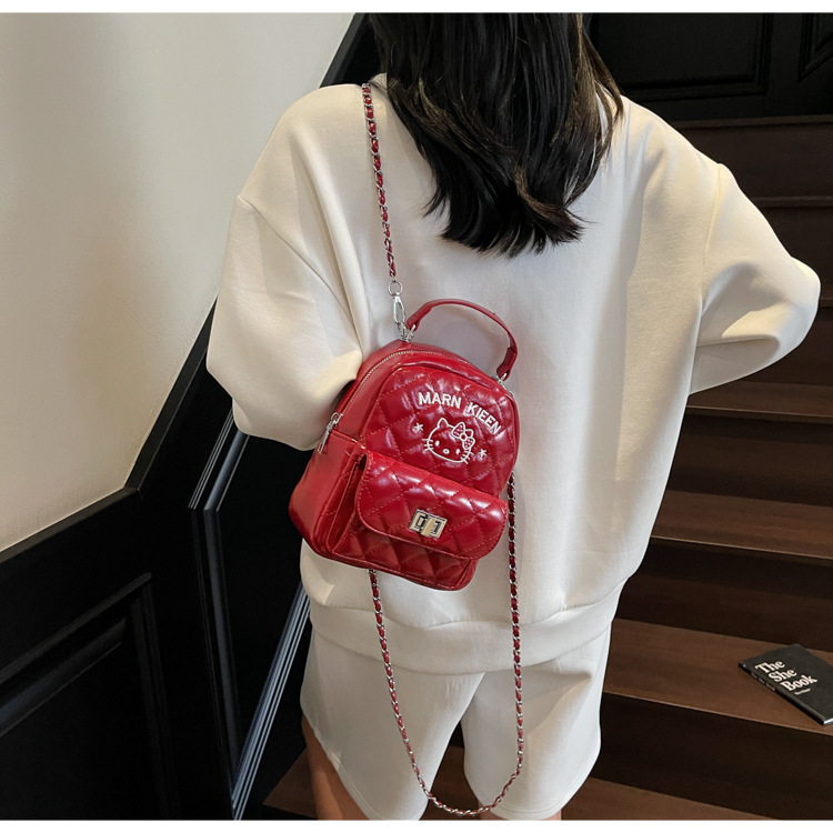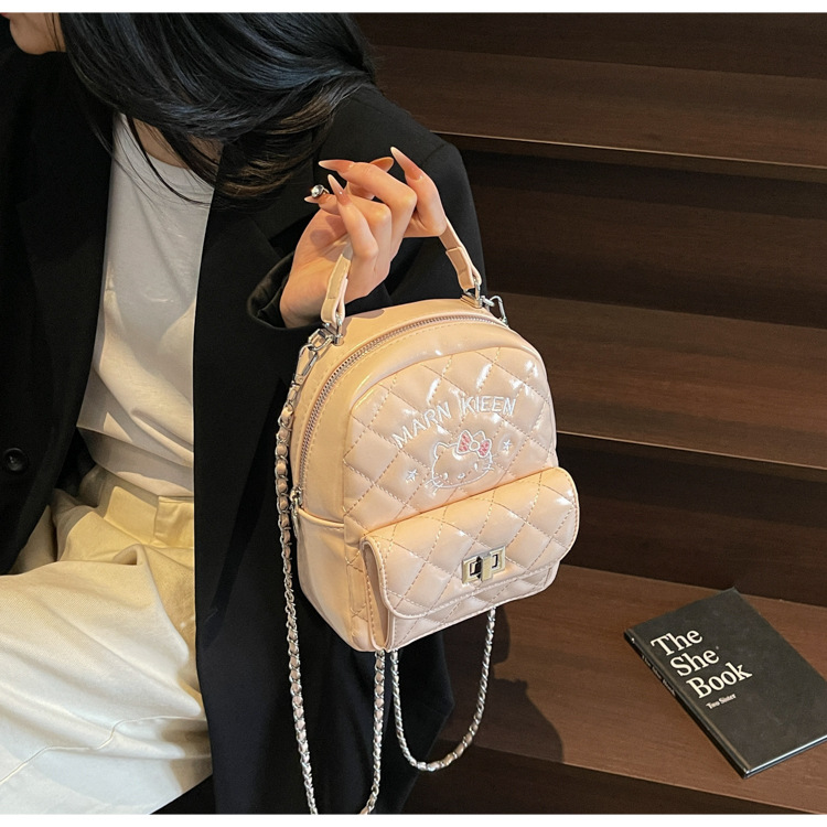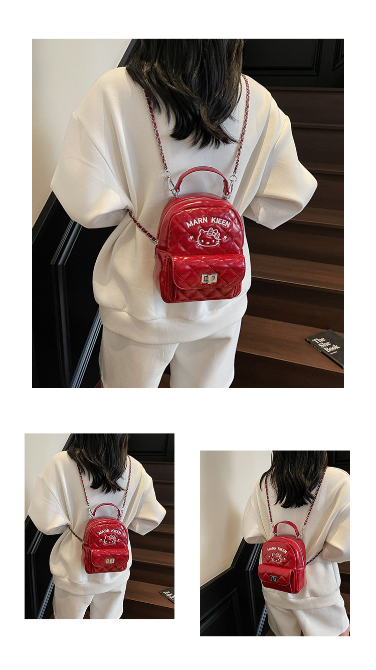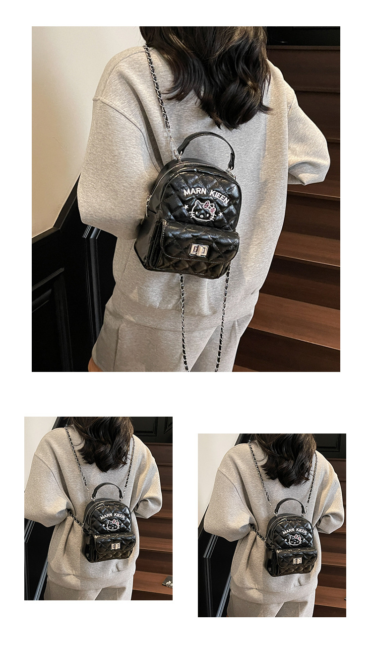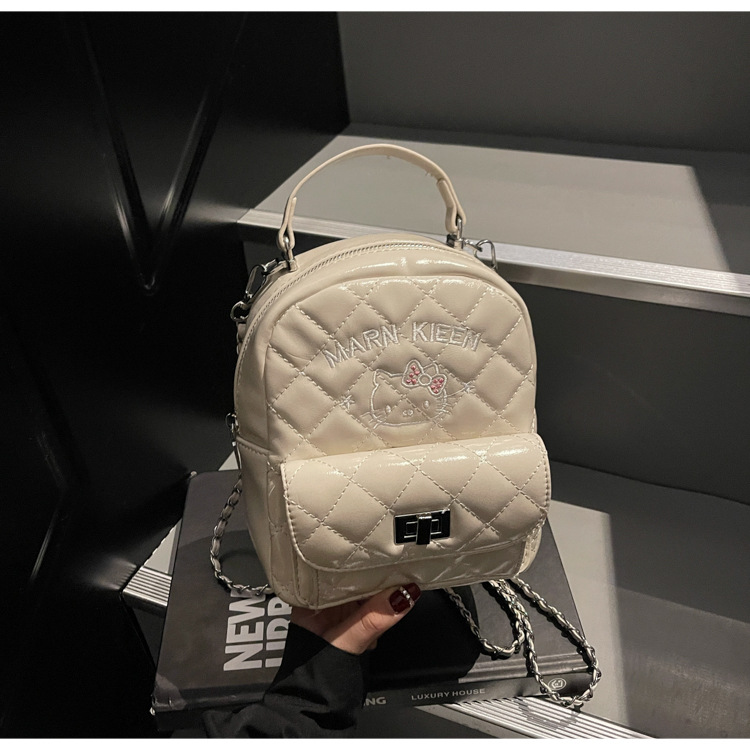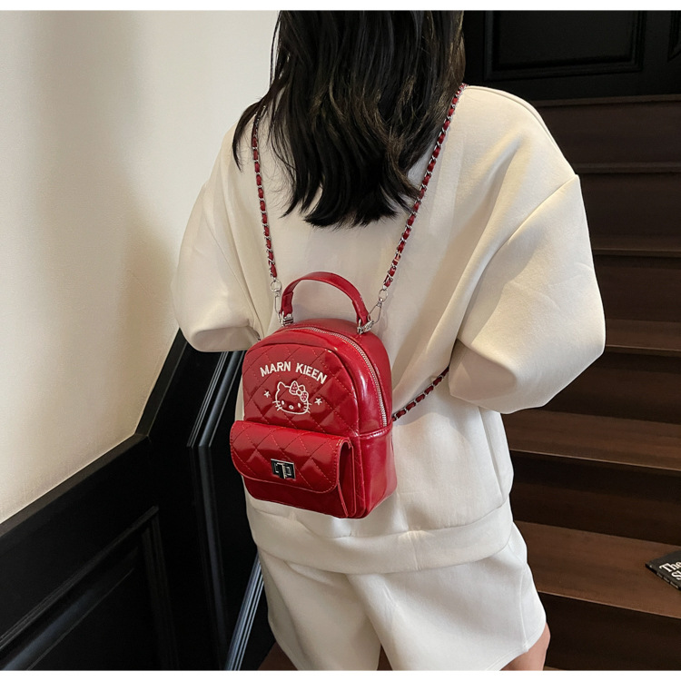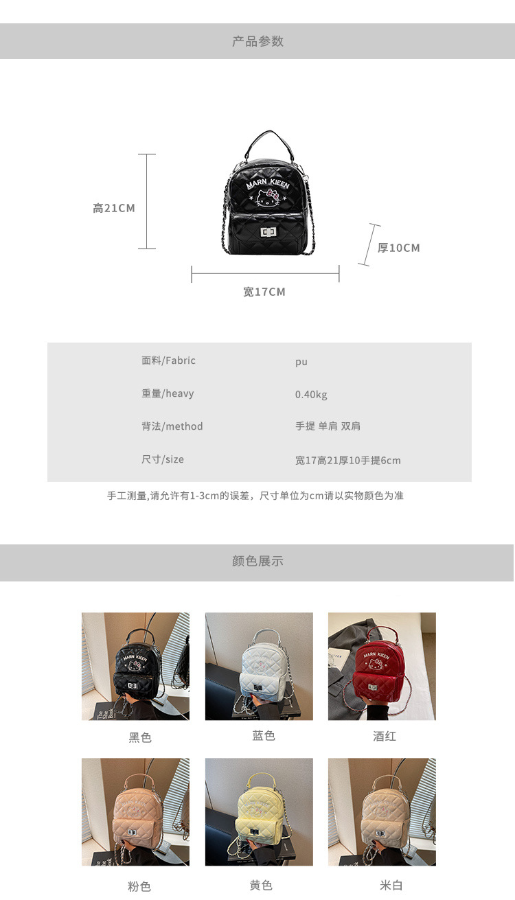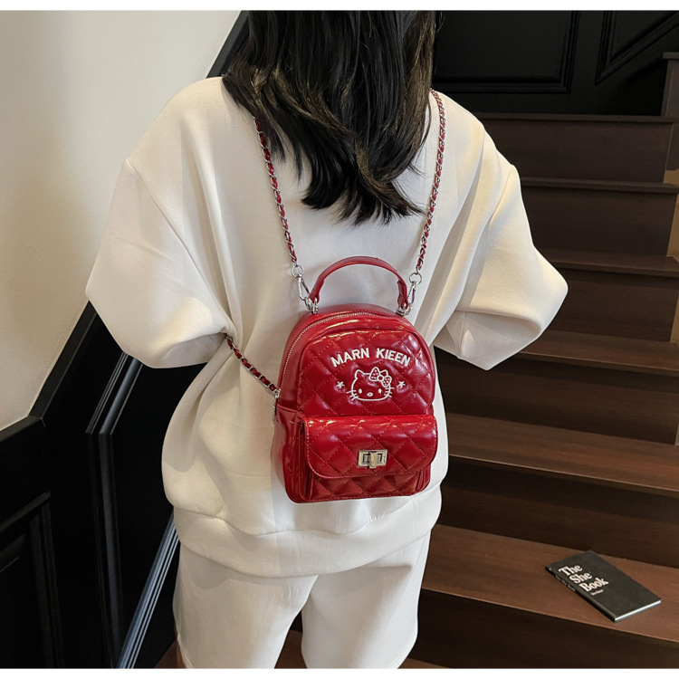 한국어 버전 ins 작은 향기로운 핸드백 귀여운 kt 고양이 프린트 배낭 캐주얼 심플 배낭 트렌디 크로스 바디 백