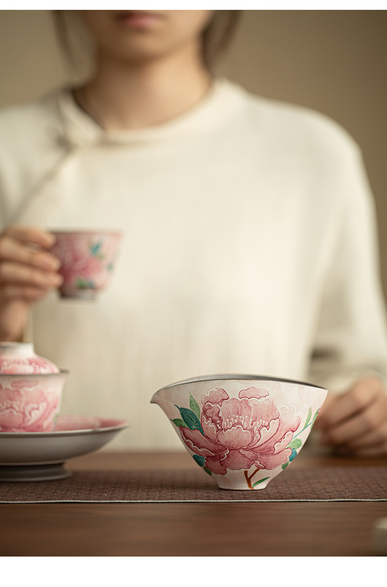 오래된 암석 점토 분말 모란 공정 컵 차 바다 차 분배기 세라믹 차 세트 절묘한 차 세트 액세서리 쿵푸 차 세트스토어 가기