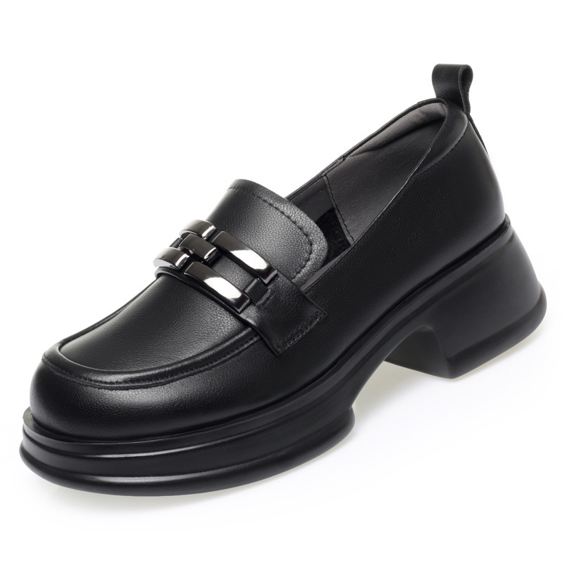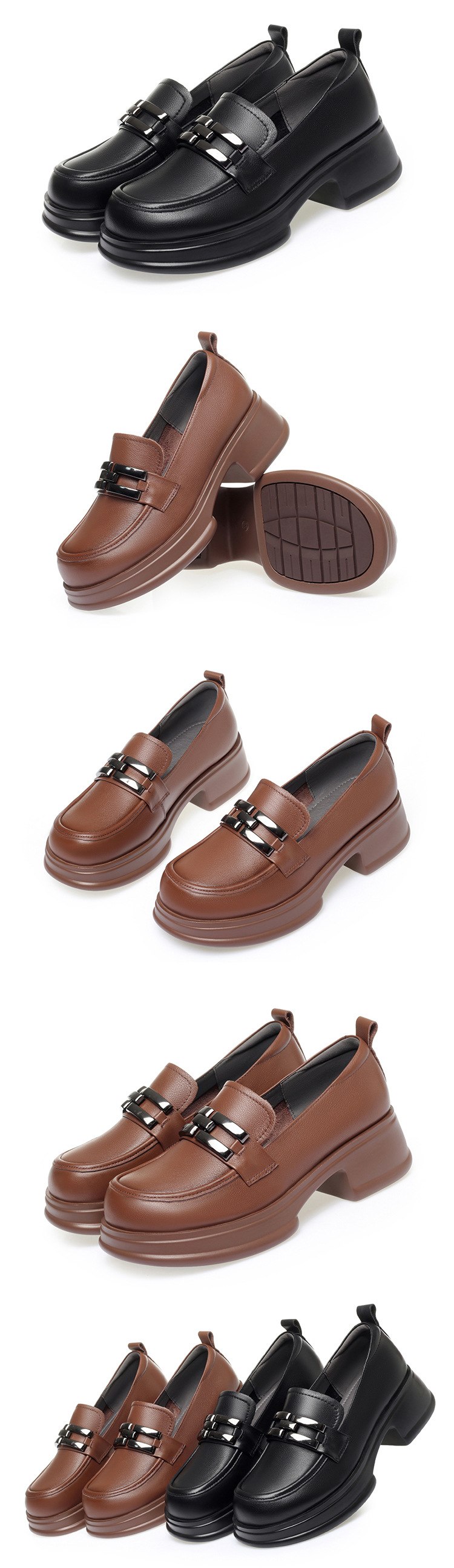 로퍼 가을 정품 가죽 두꺼운 밑창 둥근 발가락 플랫 소프트 솔 슬립 온 신발 여성용 소 가죽 중간 입 편안한 비니 신발