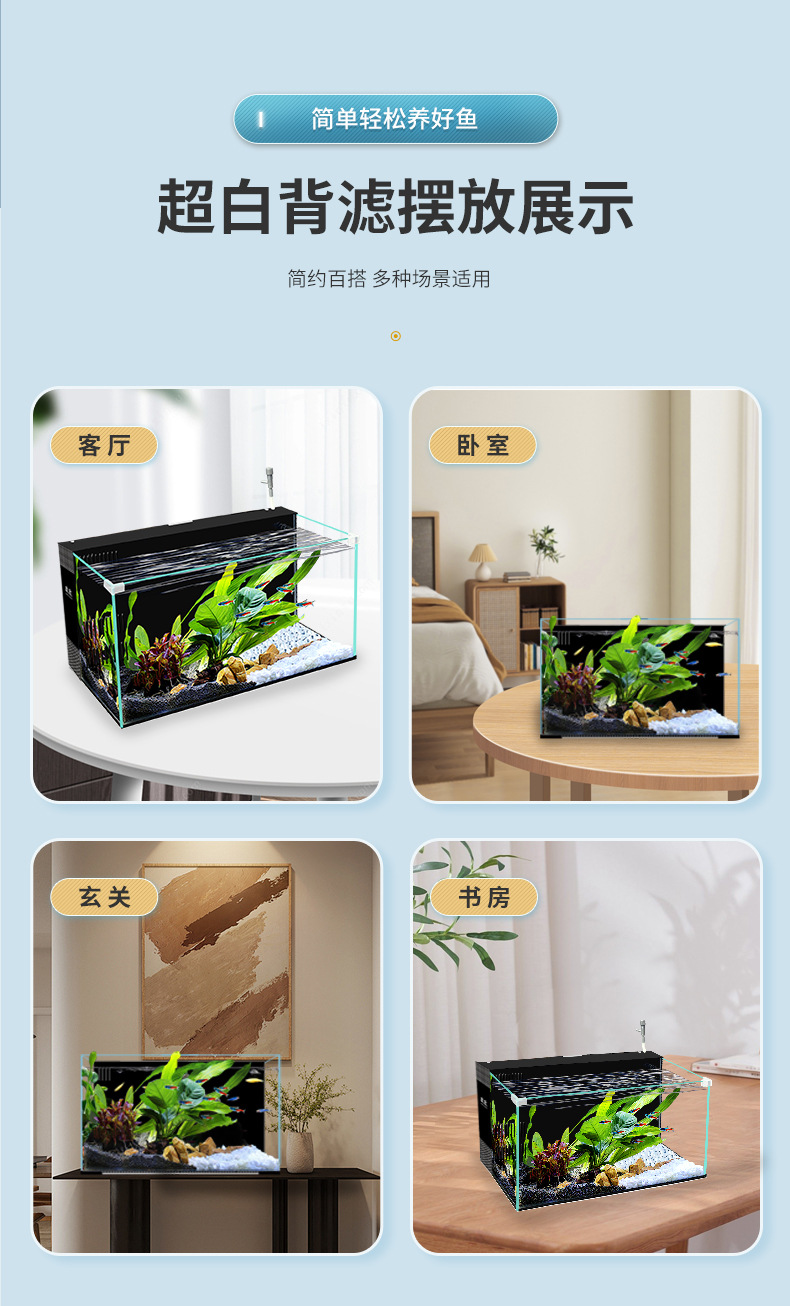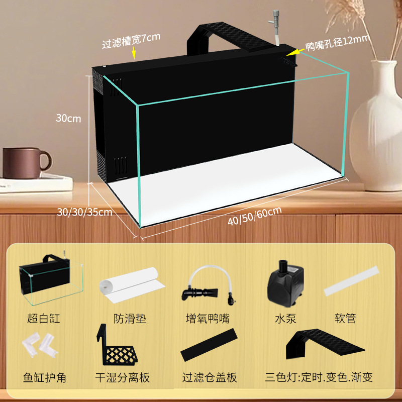 초백색 후면 필터 수조, 자체 순환, 게으른 인공 조경 수조, 거실 생태 데스크탑 금붕어 수조, 물을 갈아들이지 않는 일체형 수조스토어 가기