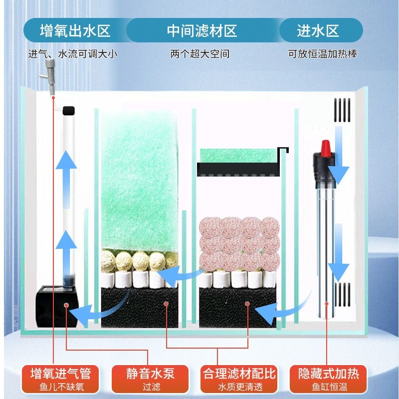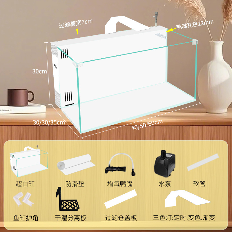 초백색 후면 필터 수조, 자체 순환, 게으른 인공 조경 수조, 거실 생태 데스크탑 금붕어 수조, 물을 갈아들이지 않는 일체형 수조