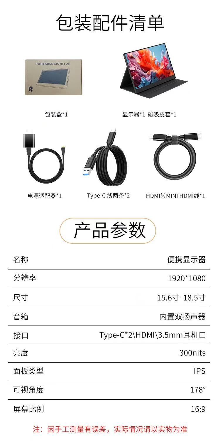 便携式显示器笔记本扩展屏折叠副15.6英寸2k