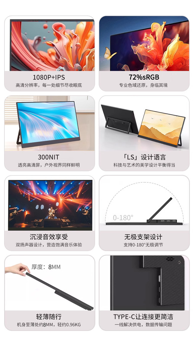 便携式显示器100hz/120hz笔记本扩展显示屏switch外接屏电脑副屏