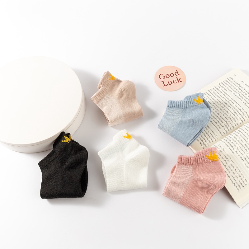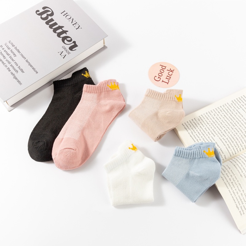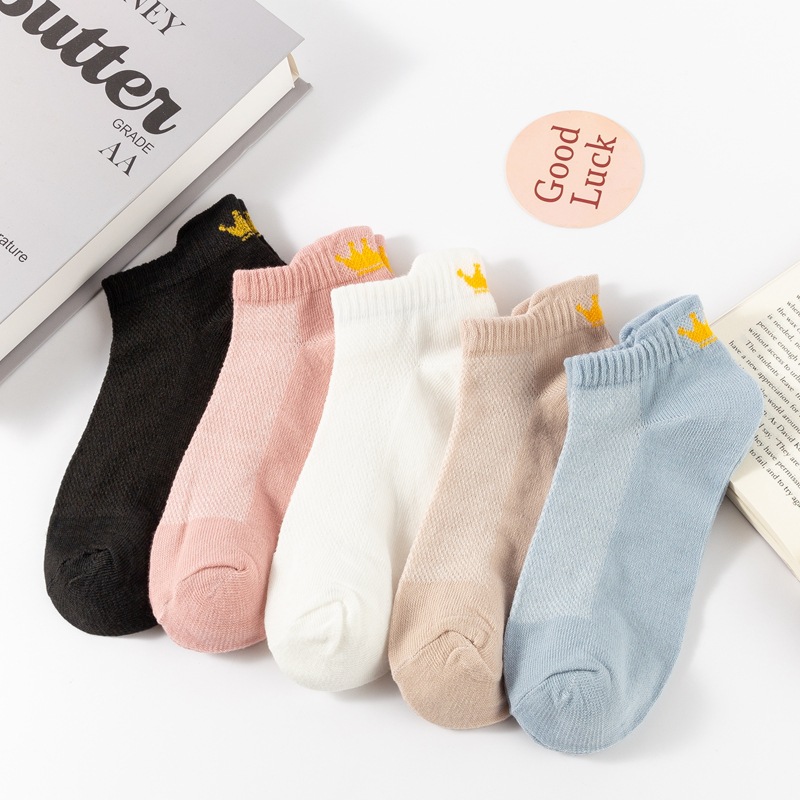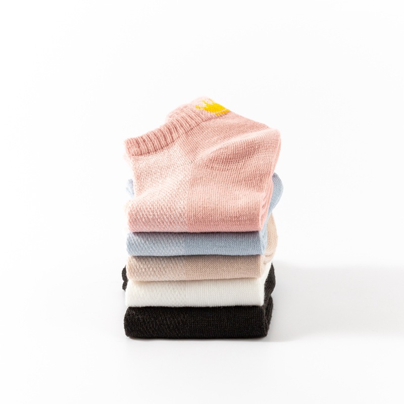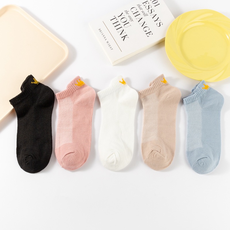 양말 여성용 짧은 양말 면 양말 여름 얇은 메쉬 통기성 발 뒤꿈치 귀 마모 방지 발 대학 스타일 크라운스토어 가기