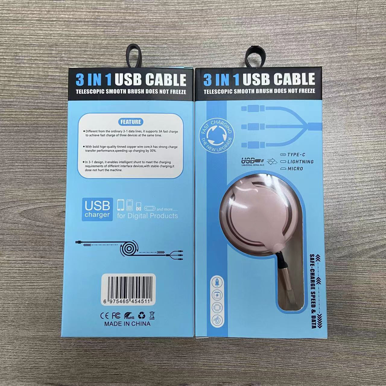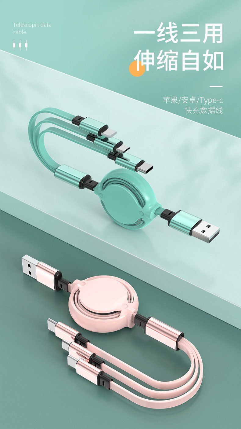 1-3 개의 개폐식 USB 데이터 케이블 3-in-1 새로운 중간 원형 휴대 전화 고속 충전 케이블 제조 업체 판촉 전시회 선물스토어 가기