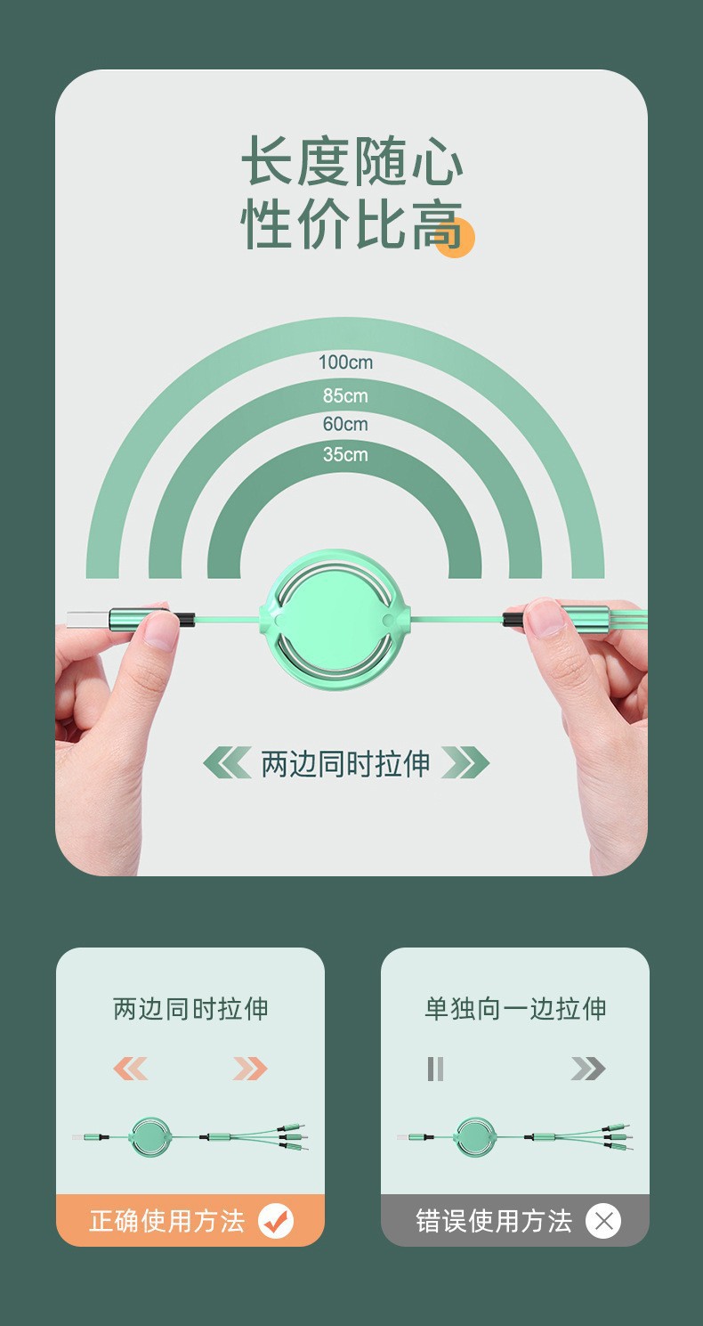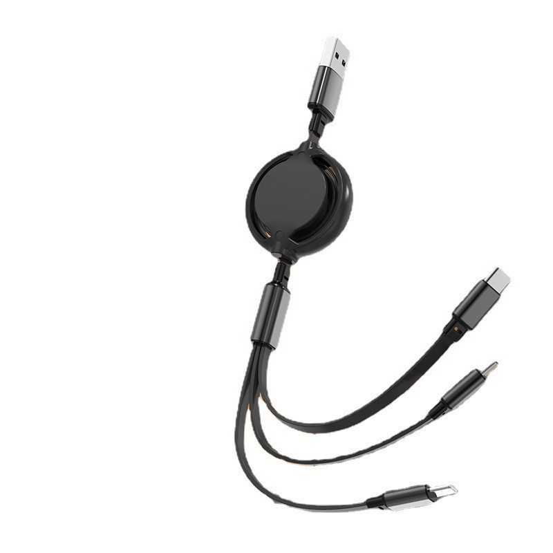 1-3 개의 개폐식 USB 데이터 케이블 3-in-1 새로운 중간 원형 휴대 전화 고속 충전 케이블 제조 업체 판촉 전시회 선물