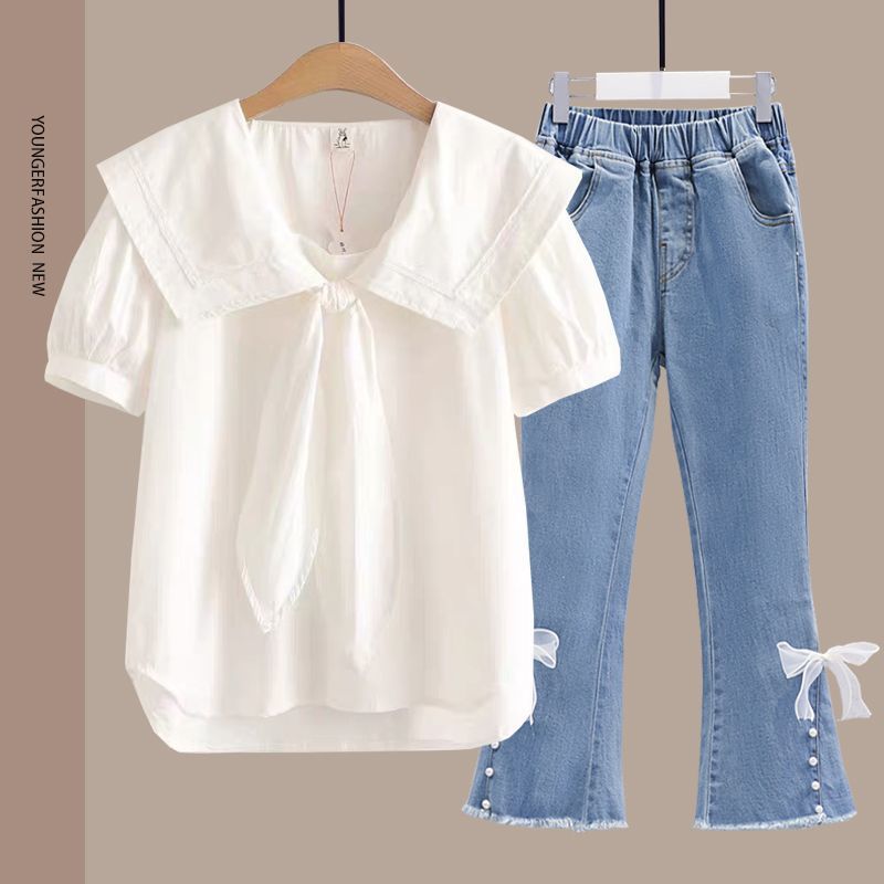 여름 여성 반팔 양복 중학생 소녀 반팔 티셔츠 양복 대학 스타일 얇은 얼음 실크 바지 싱글/세트스토어 가기