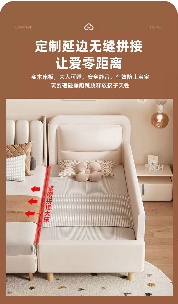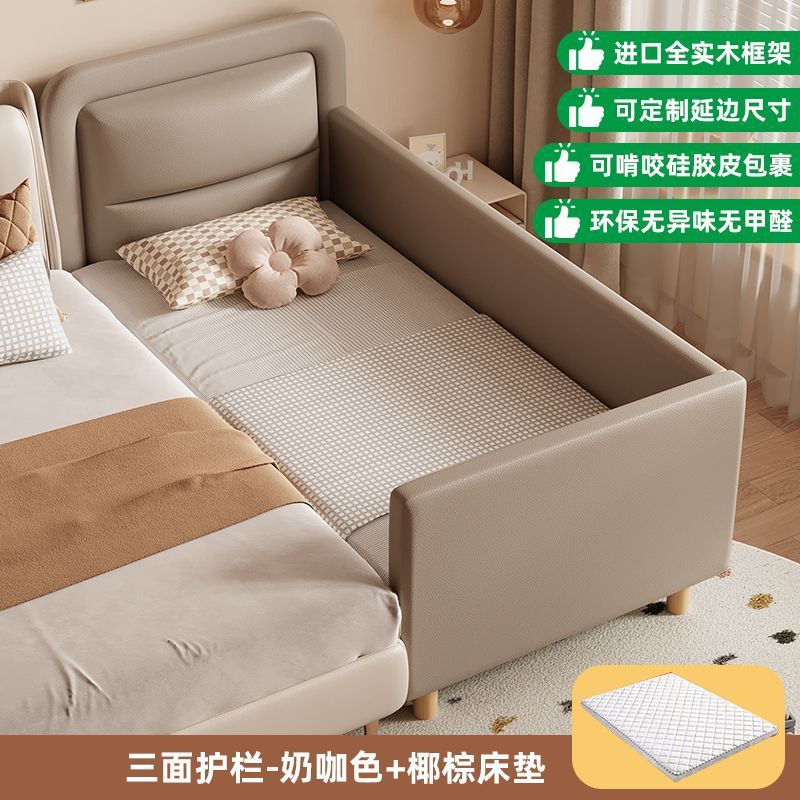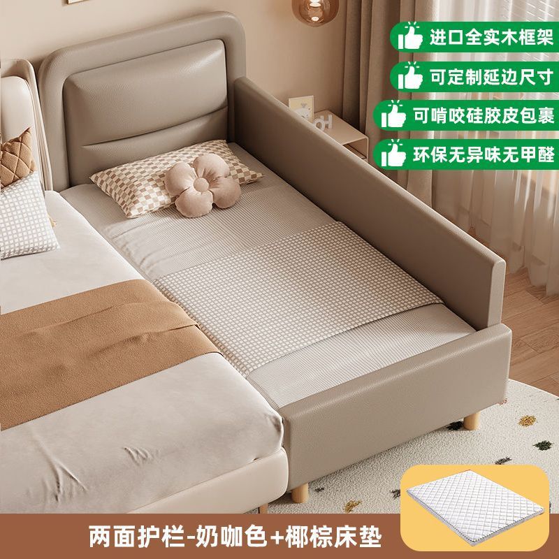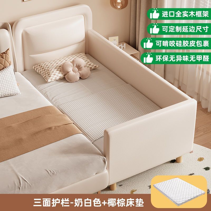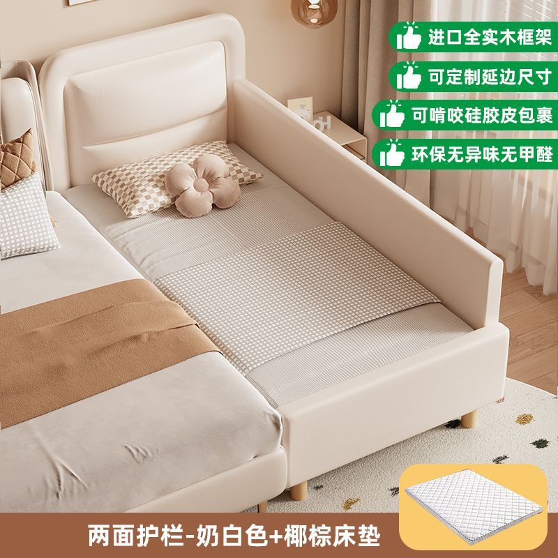 단단한 나무 어린이 접합 침대 가드 레일이있는 넓은 침대 옆 유아용 침대 소년과 소녀 유아용 접합 대형 침대스토어 가기