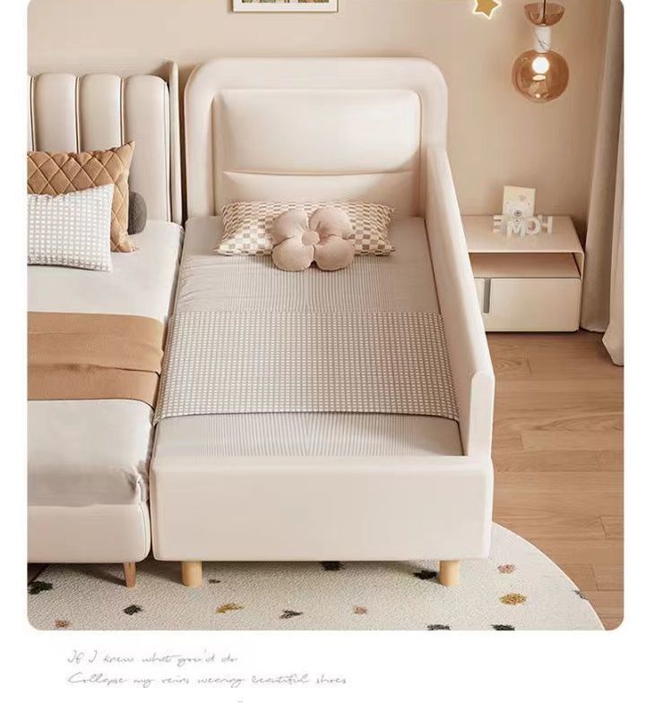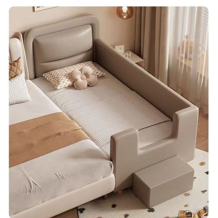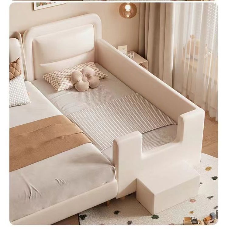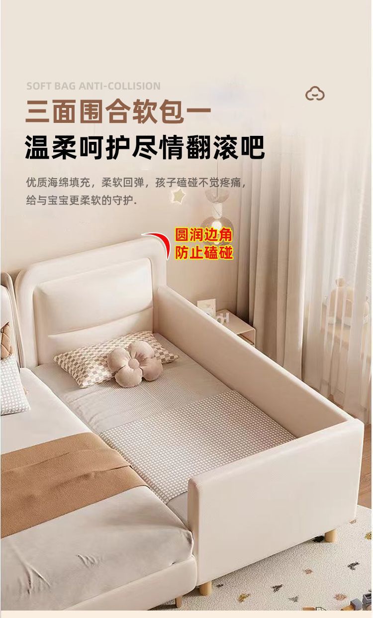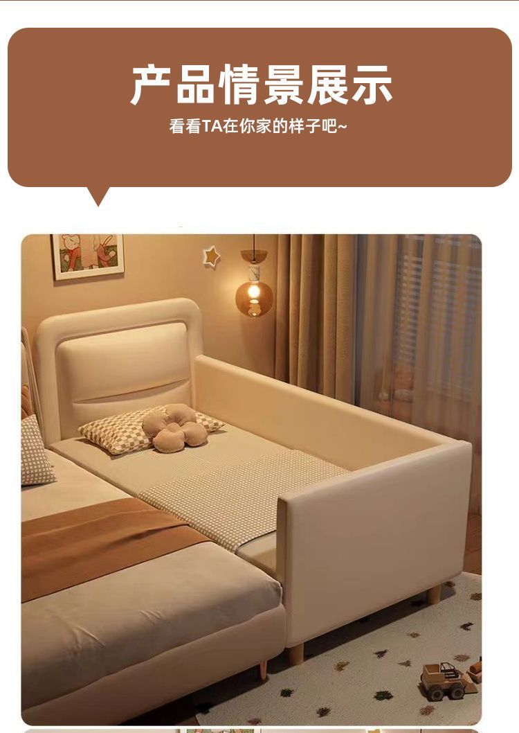 단단한 나무 어린이 접합 침대 가드 레일이있는 넓은 침대 옆 유아용 침대 소년과 소녀 유아용 접합 대형 침대스토어 가기